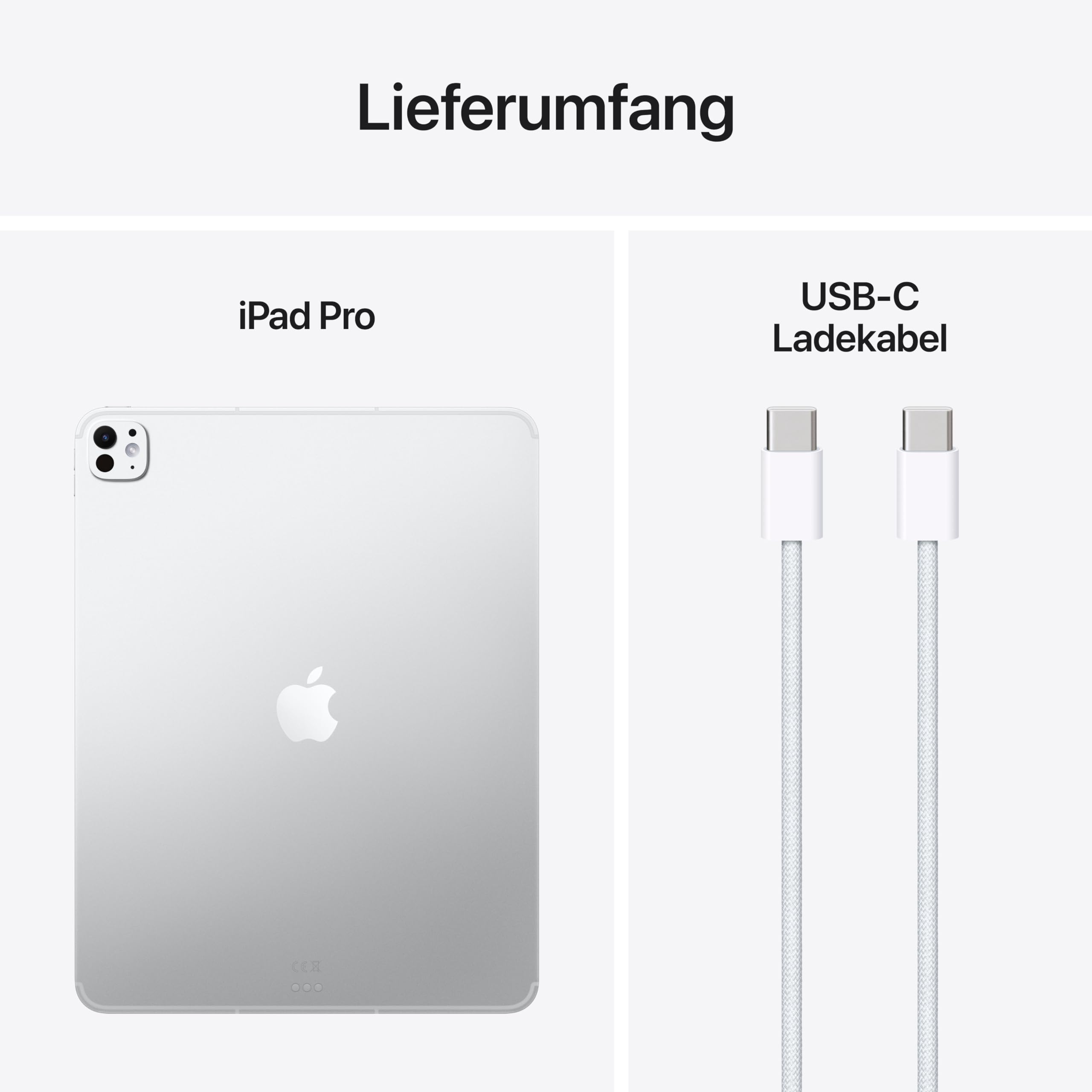 Apple 13" iPad Pro M5, 2 TB: Ultra Retina XDR Display – Nanotexturglas, 12 MP Querformat Frontkamera/12 MP Rückkamera, LiDAR Scanner, WLAN und 5G Mobilfunk – Silber