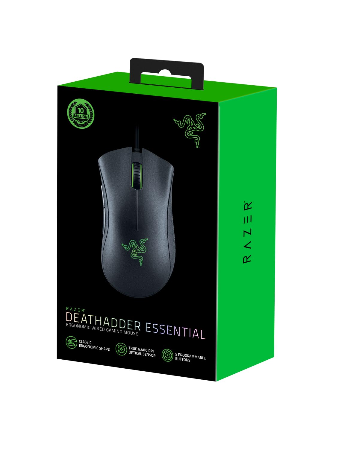 Razer DeathAdder Essential (2021) - Kabelgebundene Gaming-Maus mit Optischem Sensor mit 6400 DPI (5 programmierbare Tasten, Ergonomischer Formfaktor, 10 Millionen Klicks Lebensdauer) Schwarz
