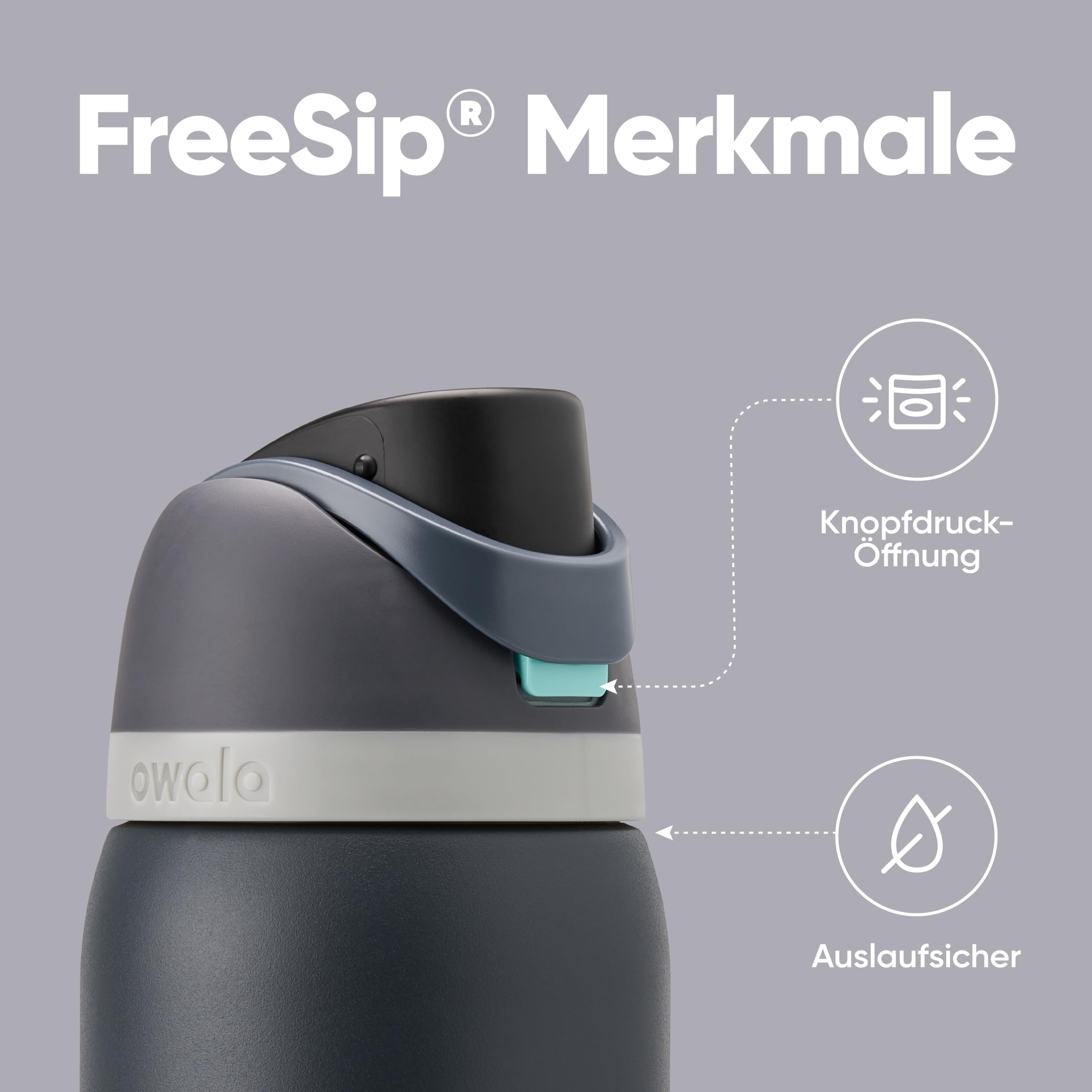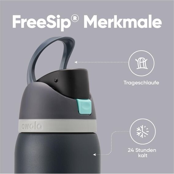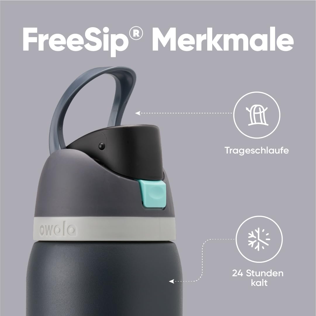 Die Owala FreeSip Isolier-Trinkflasche aus Edelstahl mit verriegelbarem Druckknopfdeckel stillt jeden Durst. Dank integriertem, leicht zu reinigendem Strohhalm und großer Trinköffnung bietet FreeSip zwei Trinkarten: aufrecht durch den Halm oder die Flasche kippen und aus der großen Öffnung schlucken. Der Druckknopfdeckel und fröhliche Farben machen Hydratisieren einfacher – und spaßiger – denn je. Weitere Highlights: doppelwandiger Edelstahl hält Getränke bis zu 24 Stunden kalt, Trageschlaufe dient zugleich als Verriegelung, Becherhalter-freundlicher, sowie weite Öffnung für einfaches Reinigen und Eiswürfel. Erhältlich in 710 ml (24 oz) und 945 ml (32 oz). Deckel ist spülmaschinenfest, Flasche von Hand waschen. Nicht für heiße oder kohlensäurehaltige Getränke geeignet. Herstellergarantie: begrenzte lebenslange Garantie.