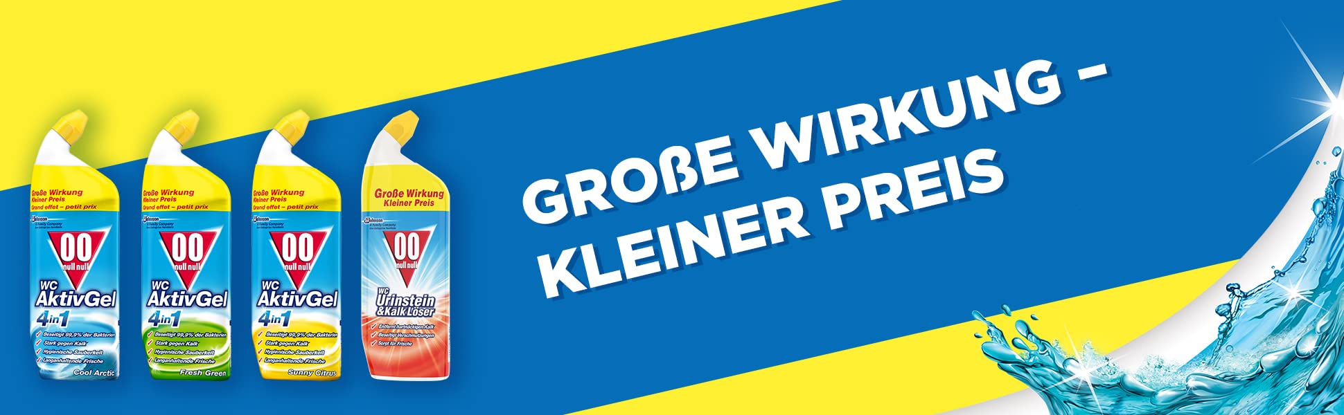 Das 00 null null Aktiv Gel 4in1 wurde für die zuverlässige und gründliche WC-Reinigung entwickelt, Es macht Ihre Toilette hygienisch rein und beseitigt 99,9Prozent der Keime und Bakterien, Die Formel ist stark gegen Kalk und sorgt für hygienische Sauberkeit und langanhaltende Frische, Das Produkt ist in einer Vielzahl von Düften erhältlich, Anwendungshinweise: Heben Sie den Toilettensitz an, Um die Kappe zu entfernen, drücken Sie die beiden strukturierten Flächen aufeinander und schrauben die Kappe dann vollständig ab, Kippen Sie die Flasche, um den Flaschenhals mit Reiniger-Gel zu befüllen, Flüssigkeit direkt unter den Toilettenrand geben und gleichmäßig innerhalb der Schüssel verteilen, Anschließend mit der Toilettenbürste den bereits angelösten Schmutz entfernen, Dann spülen, Kappe wieder aufsetzen und fest verschließen,BAuA-Nummer: N-77107, Biozidprodukte vorsichtig verwenden, Vor Gebrauch stets Etikett und Produktinformationen lesen,