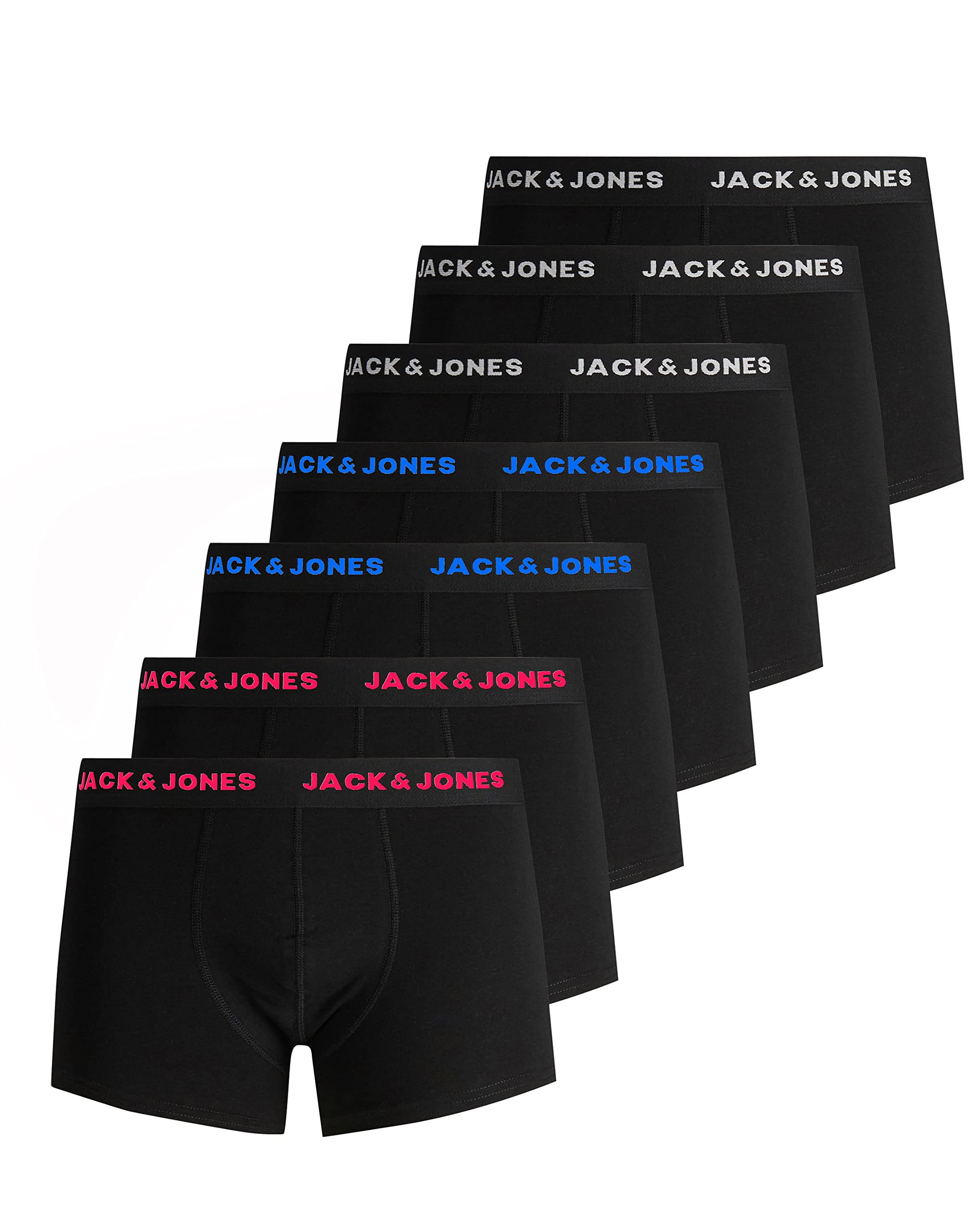 Jack Jones Herren JACBELMO Unterhosen 7er Pack Schwarz Logo Weiß Rosa Blau M Modische Herrenbekleidung Unterwäsche Unterhosen Farbe 7x Schwarz Druck 3x Weiß 2x Rosa 2x Blau Größe M Produkttyp Unterhose Marke Bestseller AS