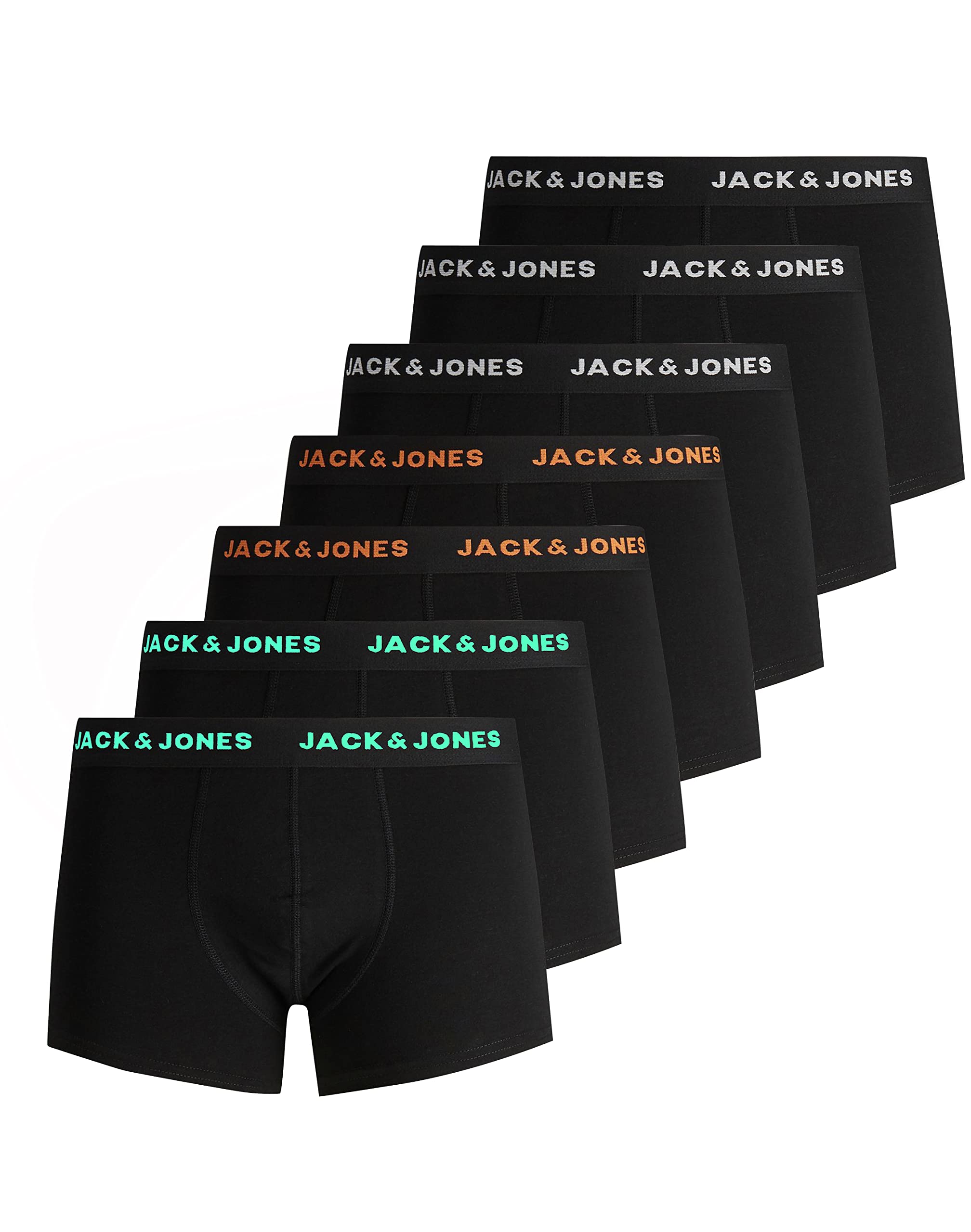 Herren JACBELMO Trunks 7er Pack, Schwarz/Logo Weiß/Orange/Grün, XXL