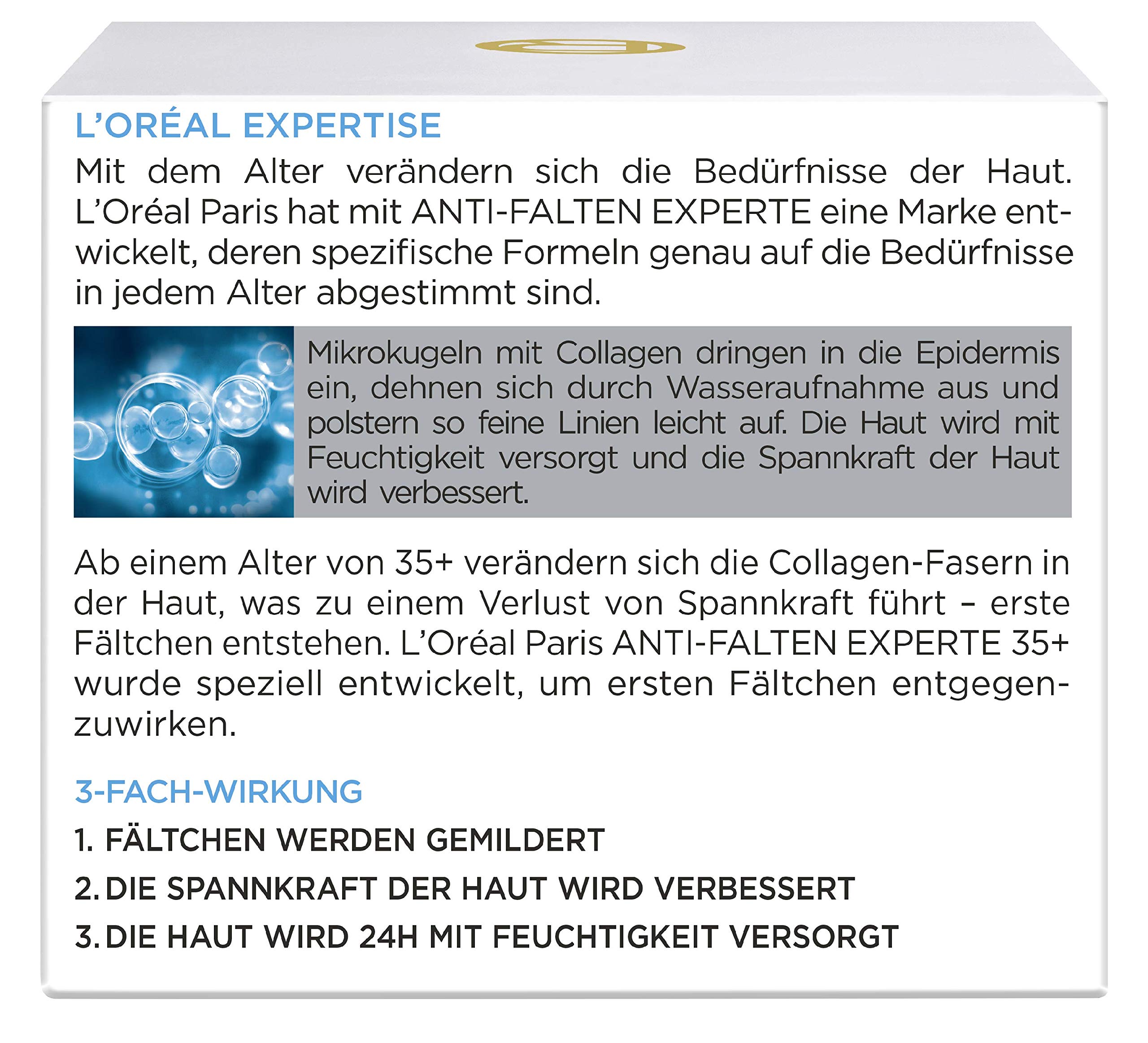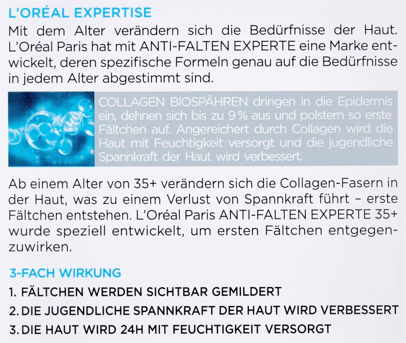 • Lieferumfang: 1 x L'Oréal Paris Anti-Falten Experte 35+ Collagen, 1 x 50 ml
