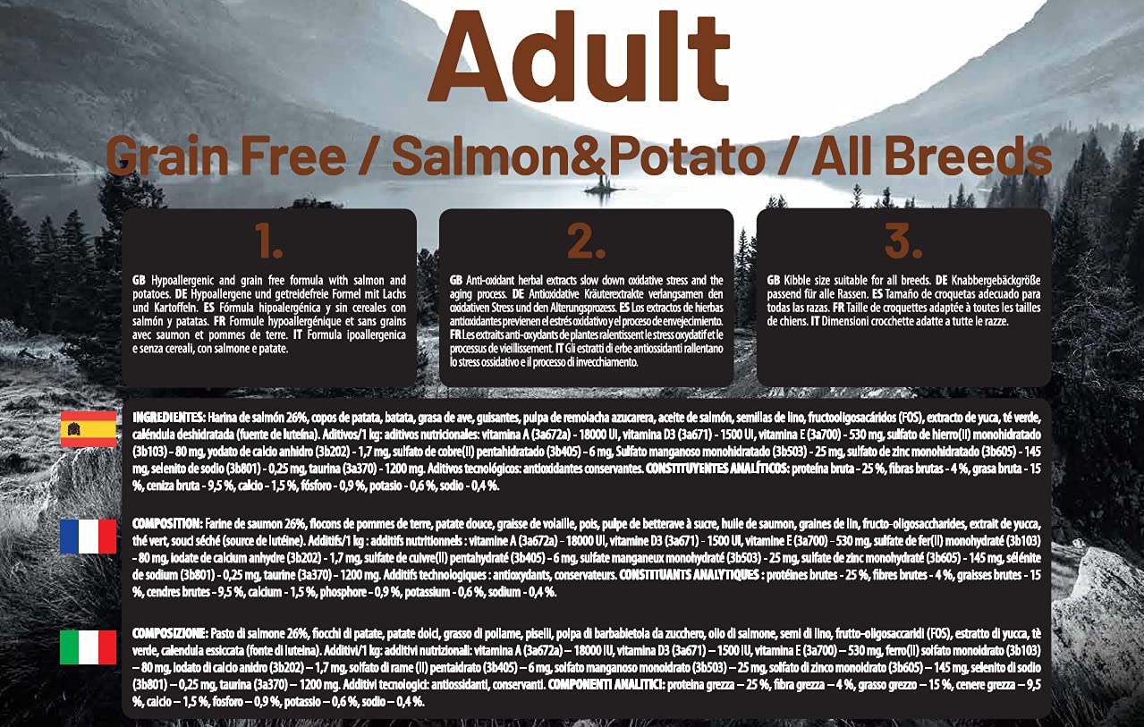• Hypoallergen und ohne Getreide, mit Lachs und Kartoffeln