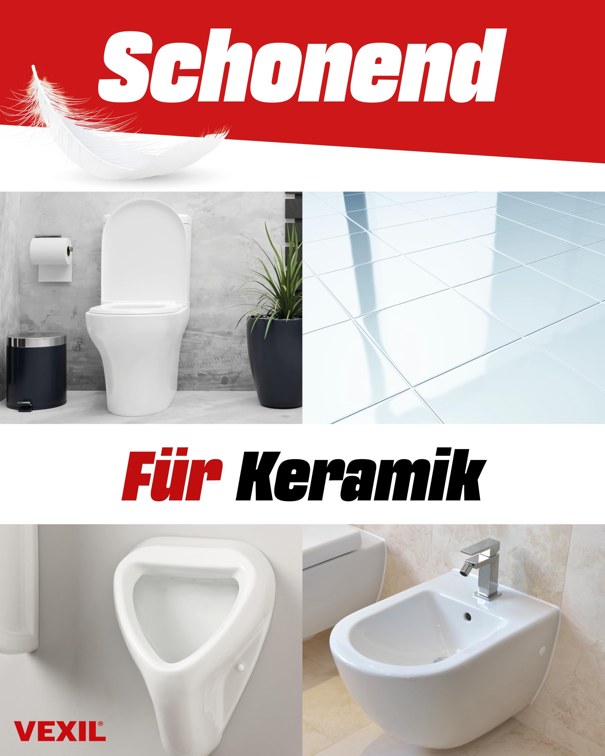 • SCHONEND ZU KERAMIK – speziell entwickelt, um extreme Ablagerungen auf Keramik zu lösen (z.B. Fließen, Toiletten, Urinale). ACHTUNG, nur für Keramik - nicht geeignet für Armaturen und Toilettenbrillen. ⚠️ Unbedingt Handschuhe tragen ⚠️