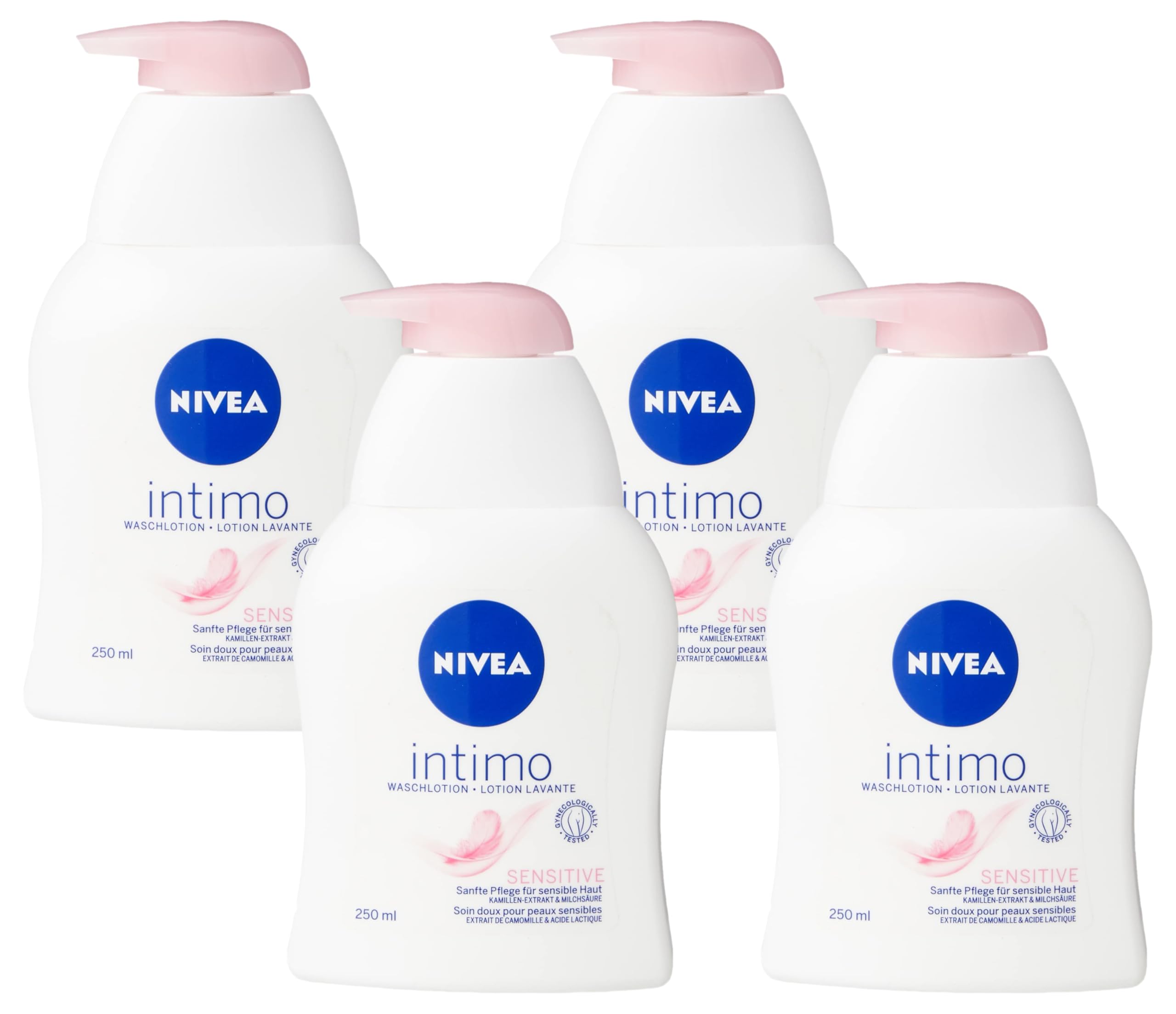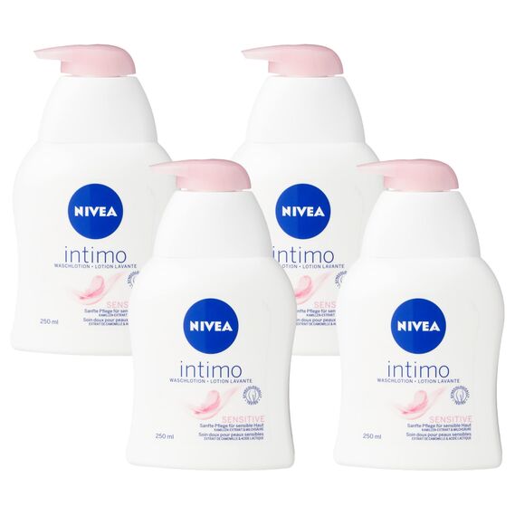 NIVEA Intimo Waschlotion Sensitive (250 ml), Intim Waschgel mit Milchsäure, Kamillenextrakt und Panthenol, Intim Waschlotion für sensible Haut (Packung mit 4)