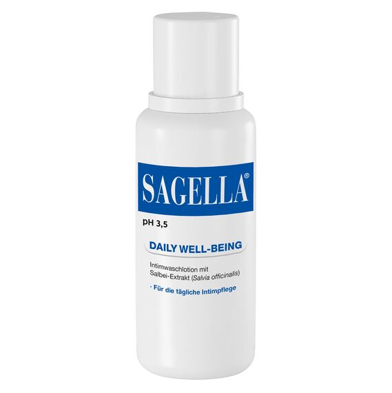 SAGELLA pH 3,5 - DAILY WELL-BEING Intimwaschlotion SAGELLA pH 3,5 – DAILY WELL-BEING für die tägliche Intimpflege ist an den physiologisch pH-Wert angepasst. Von der Pubertät bis zur Menopause unterstützt es den natürlichen Schutzschild im Intimbereich und sorgt für eine angenehme Frische. Die milde Formel von SAGELLA pH 3,5 -DAILY WELL-BEING mit Milchsäure und Salbeiextrakt ist täglich bis zu mehrmals täglich anwendbar und hinterlässt auch während der Menstruation ein frisches und gepflegtes Gefühl. Das intime Gleichgewicht wird dabei gestärkt und die Haut beruhigt und sanft gepflegt. Der empfindliche Intimbereich kann so vor Irritationen geschützt werden. Wie alle SAGELLA Produkte ist SAGELLA pH 3,5 – DAILY WELL-BEING dermatologisch und gynäkologisch getestet. Im Überblick: Milde Intimwaschlotion für die tägliche Anwendung. Von der Pubertät bis zu den Wechseljahren. Mit Milchsäure und natürlich erfrischendem Salbei. Dermatologisch & gynäkologisch getestet. Seifenfrei