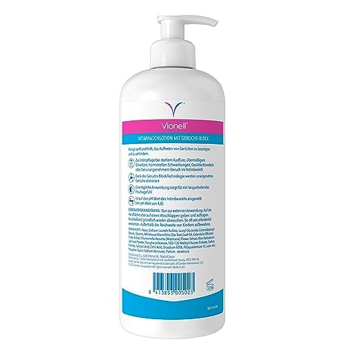 Vionell Intimwaschlotion Frauen Geruchs-Block, Für Die Tägliche Intimhygiene, Erfrischend, Mit Aloe Vera, Bis Zu 24 Stunden Geruchsschutz, 500 ml