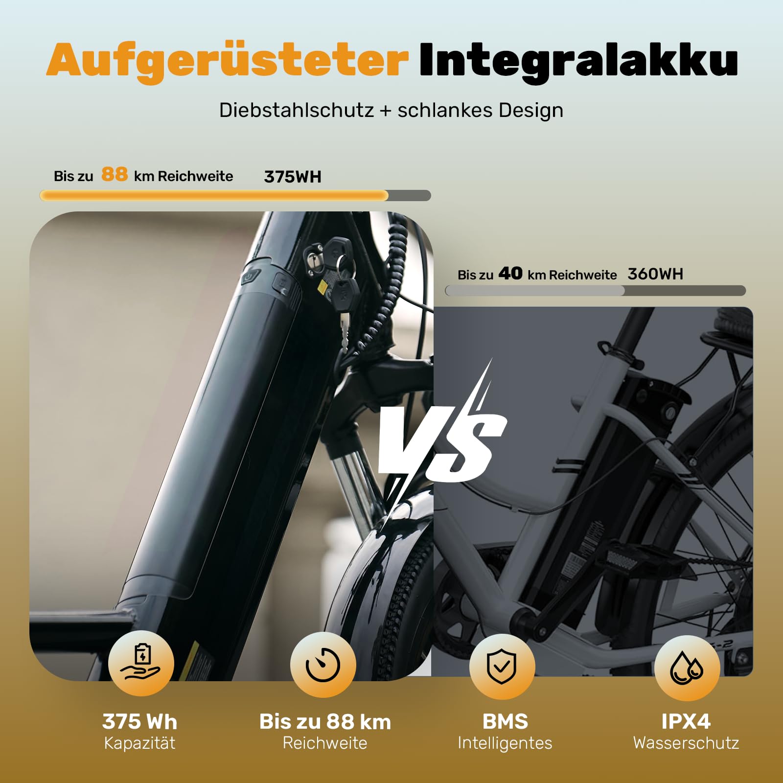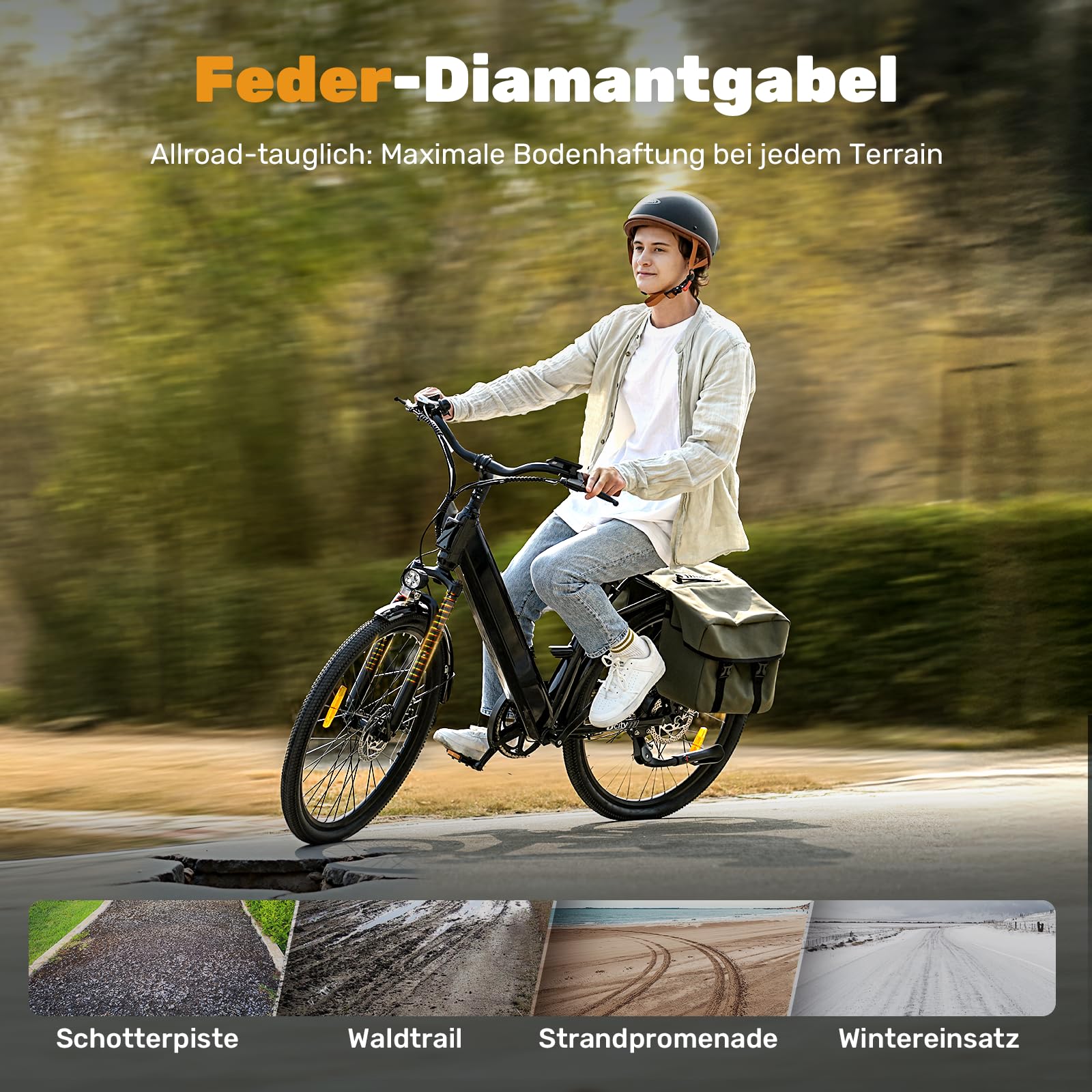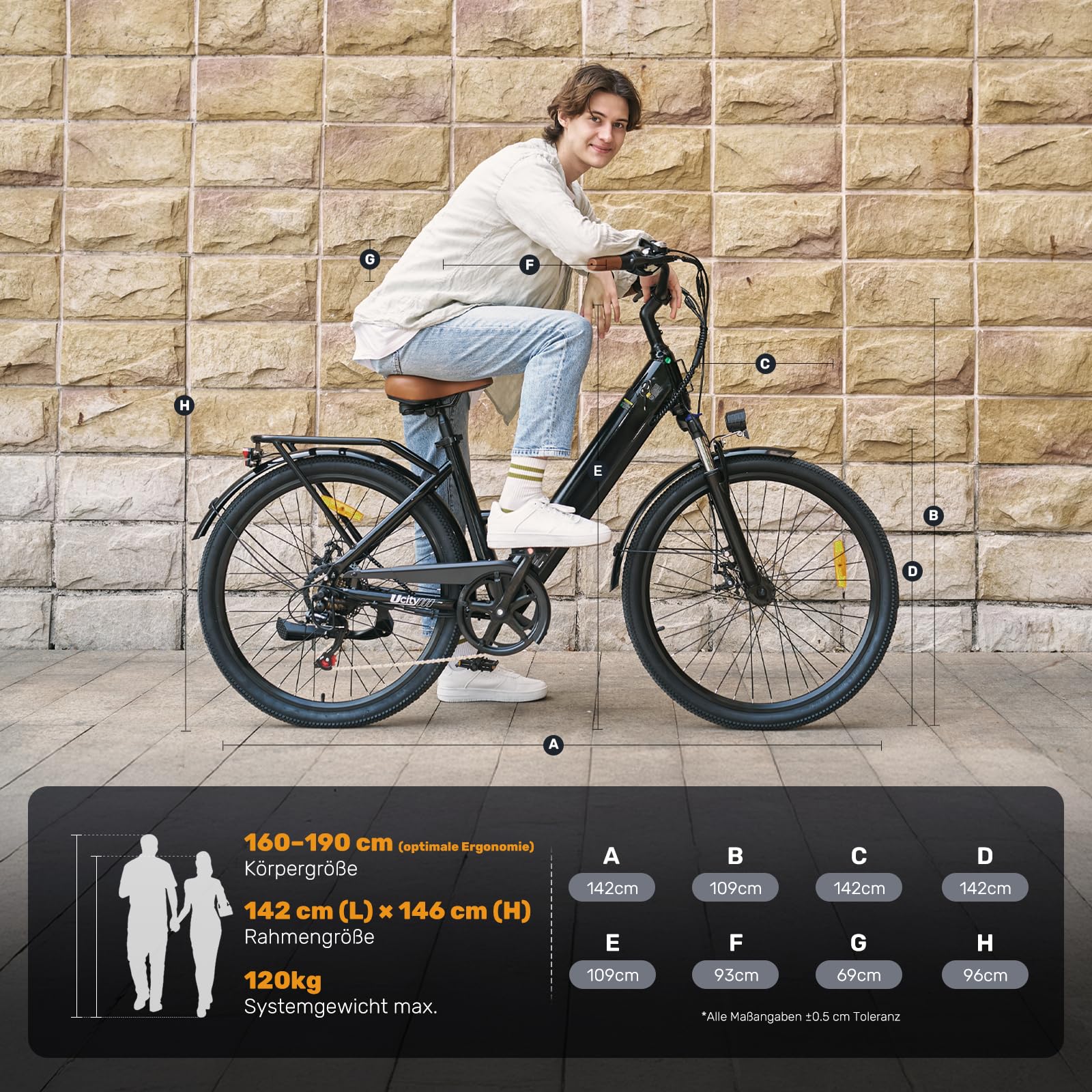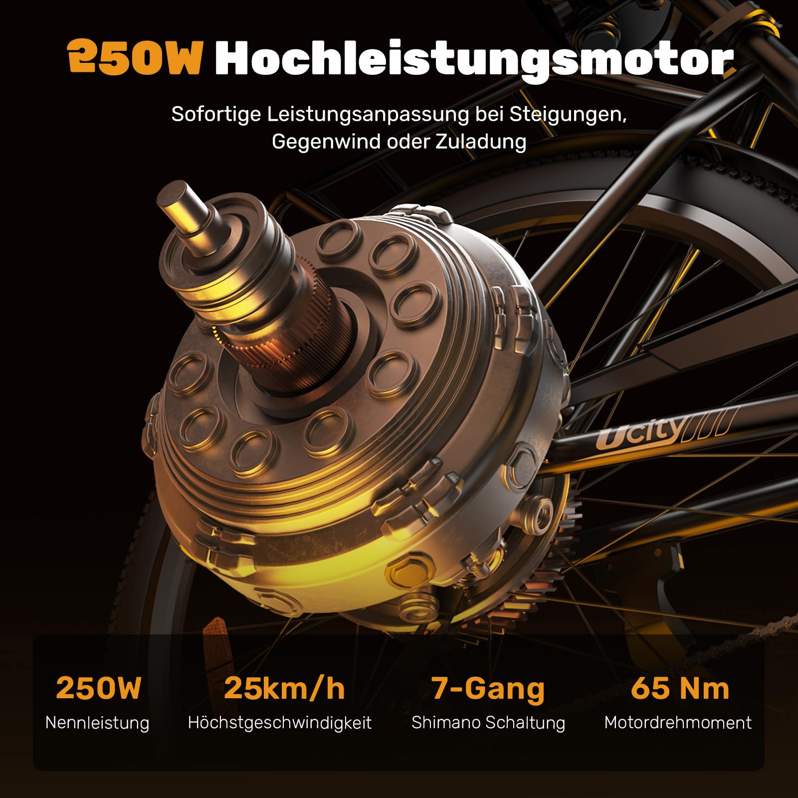 FinBike Ucitey EBike – Ihr perfekter Begleiter für die Stadt! ⚡ Ultralange Reichweite & Schnellladung Genießen Sie bis zu 88 km (55 Meilen) Reichweite im PAS-Modus (Pedal-Assist) dank der leistungsstarken 36V/10.4Ah-Batterie. Perfekt für Pendler und Stadtfahrten! Der Akku lässt sich schnell aufladen (5-6 Stunden) – entweder direkt am Rad oder bequem entnommen. ???? Kraftvoll & effizient Der bürstenlose Hochgeschwindigkeitsmotor (25 km/h, 65 Nm Drehmoment) meistert mühelos Steigungen und längere Strecken. 2 Fahrmodi: ✔ PAS-Modus: Bis zu 105 km (65 Meilen) mit Pedalunterstützung ✔ Rein elektrisch: Bis zu 58 km (36 Meilen) – ideal für entspanntes Cruisen ????️ Sicherheit rundum 26-Zoll-Reifen mit Reflektorstreifen für beste Sichtbarkeit Helle LED-Scheinwerfer & Rücklicht für Nachtfahrten Doppelte mechanische Scheibenbremsen – präzise Bremskraft auch auf nasser Straße Sequenzielles Bremsystem verkürzt den Bremsweg ???? Komfortabel & anpassbar Höhenverstellbarer Sattel (für Fahrer von 1,63 m bis 1,96 m) Ergonomische Griffe & integrierte Handauflage für ermüdungsfreies Fahren 7-Gang-Schaltung & Federgabel für smoothes Fahren auf jedem Untergrund Belastbar bis 136 kg – ideal für Alltagsnutzung ???? Einfache Montage Das E-Bike herren kommt 90% vormontiert – inkl. Werkzeug und Anleitung. Unser deutscher Kundenservice unterstützt Sie bei Fragen! FinBike Ucitey – smart, sicher & stylisch unterwegs! ????‍♂️✨ ✔ Ideal für Pendler, Stadtfahrten & Freizeit ✔ Robust, langlebig & wartungsarm ✔ Deutsches Qualitätsdesign mit Top-Kundenservice Jetzt entdecken und stressfrei durch die Stadt gleiten! ???? (Hinweis: Reichweiten können je nach Fahrweise und Gelände variieren. Alle Angaben entsprechen EU-Standards.) Warum dieses Ucitey E-Bike? Mehr Reichweite als viele Konkurrenzmodelle Schnellladefunktion für maximale Flexibilität Premium-Sicherheitsfeatures für sicheres Fahren Deutscher Support – kein langes Warten auf Ersatzteile Perfekt für alle, die ein zuverlässiges, stylishes und komfortables E-Bike suchen – ohne Kompromisse! ????
