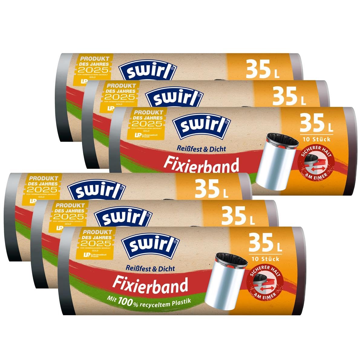 6x Swirl Fixierband Müllbeutel 35L (10 stk./Rolle)