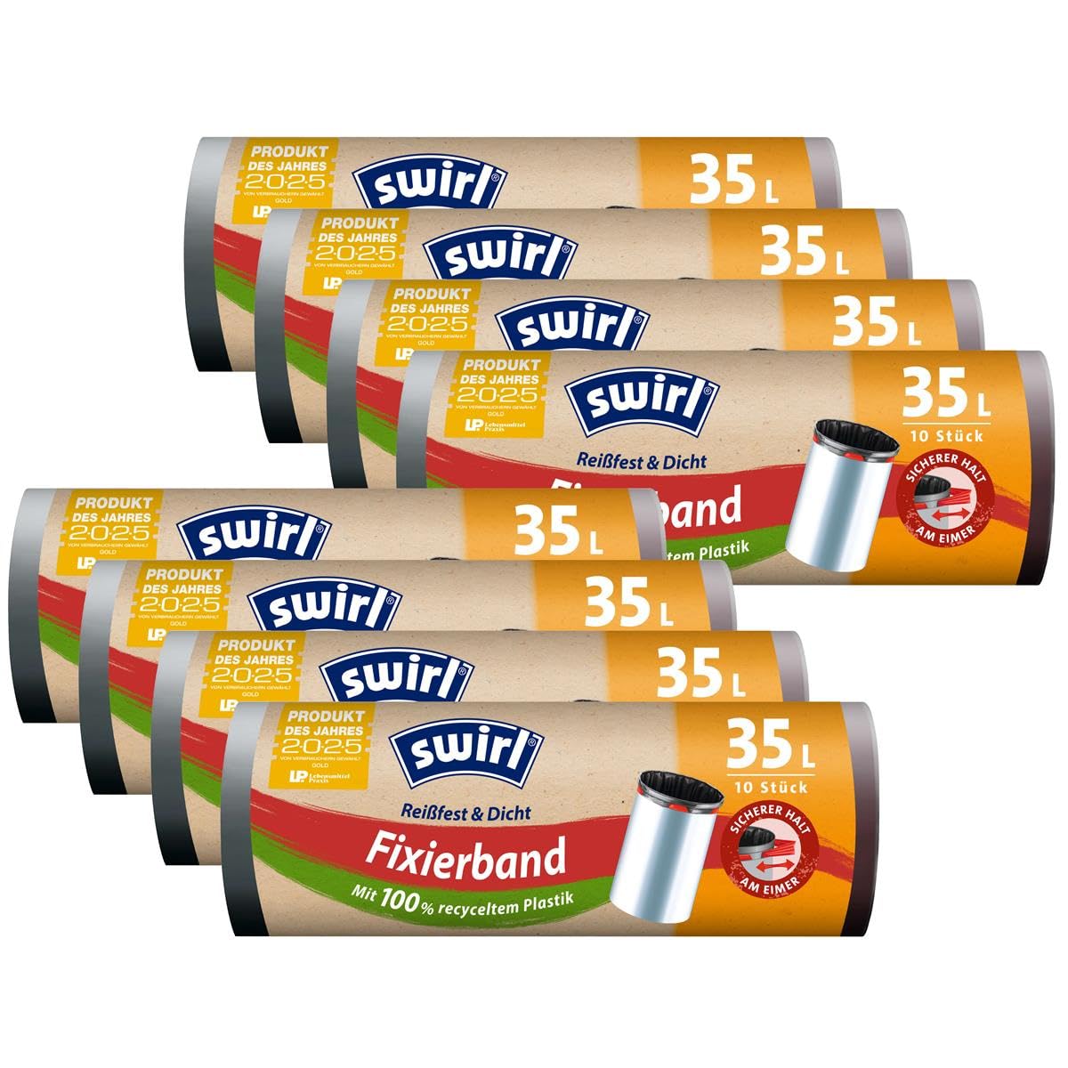 8x Swirl Fixierband Müllbeutel 35L (10 stk./Rolle)