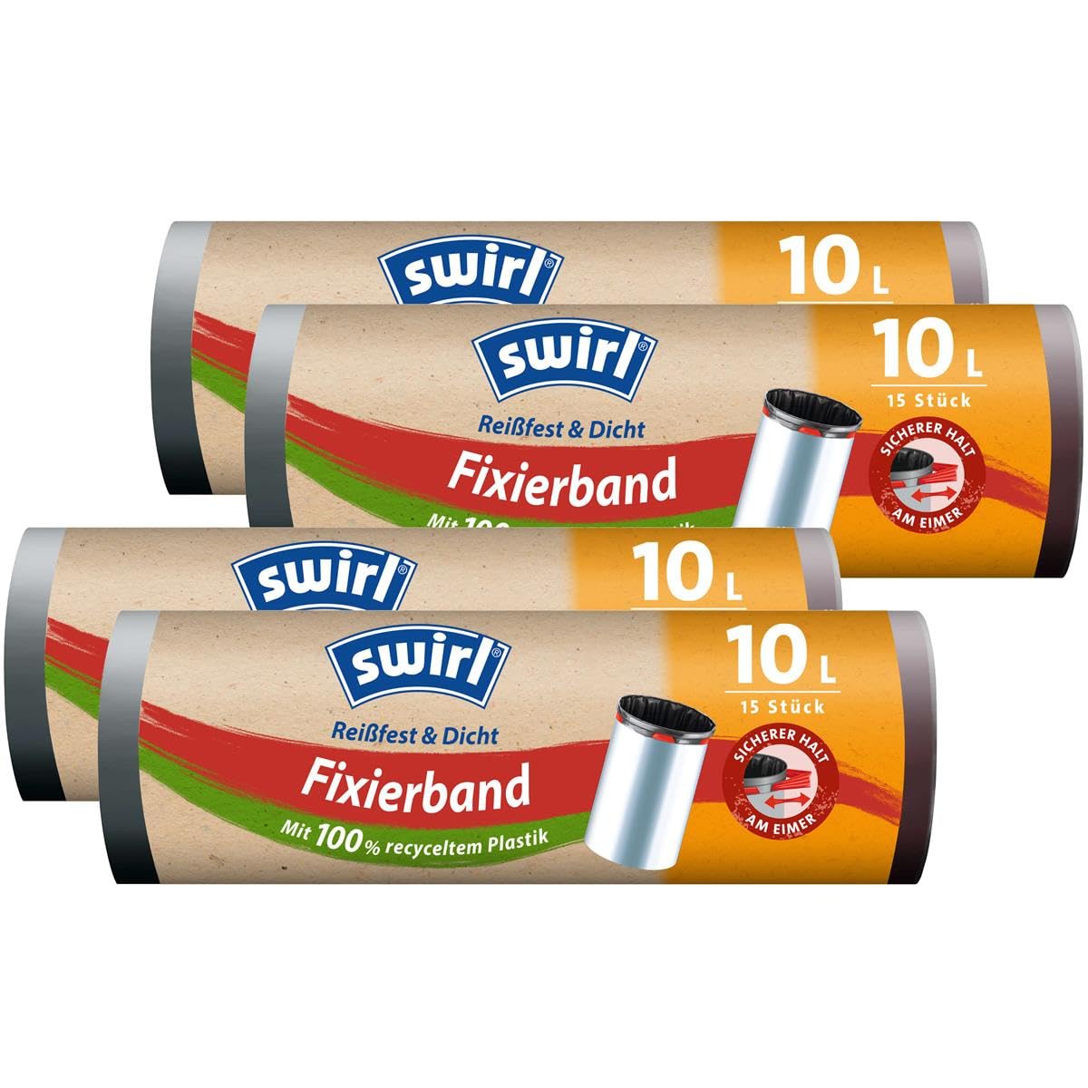 4x Swirl Fixierband Müllbeutel 10L (15 stk./Rolle)