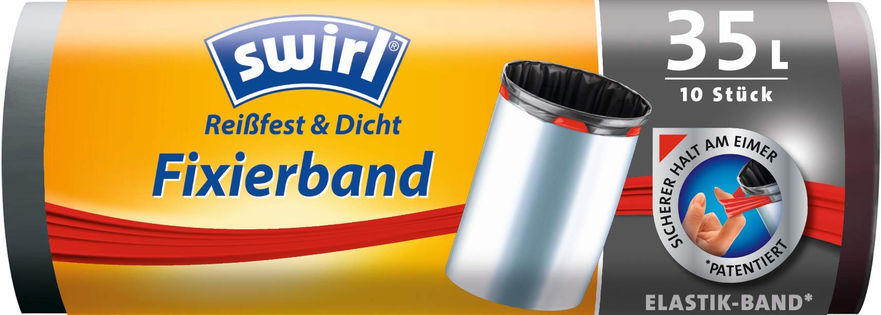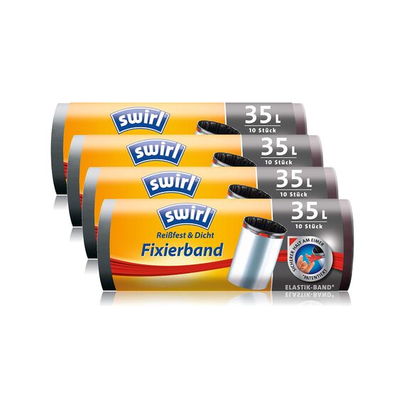 Swirl Fixierband-Müllbeutel, 35 Liter, 4 Rollen mit je 10 Beuteln, Anthrazit