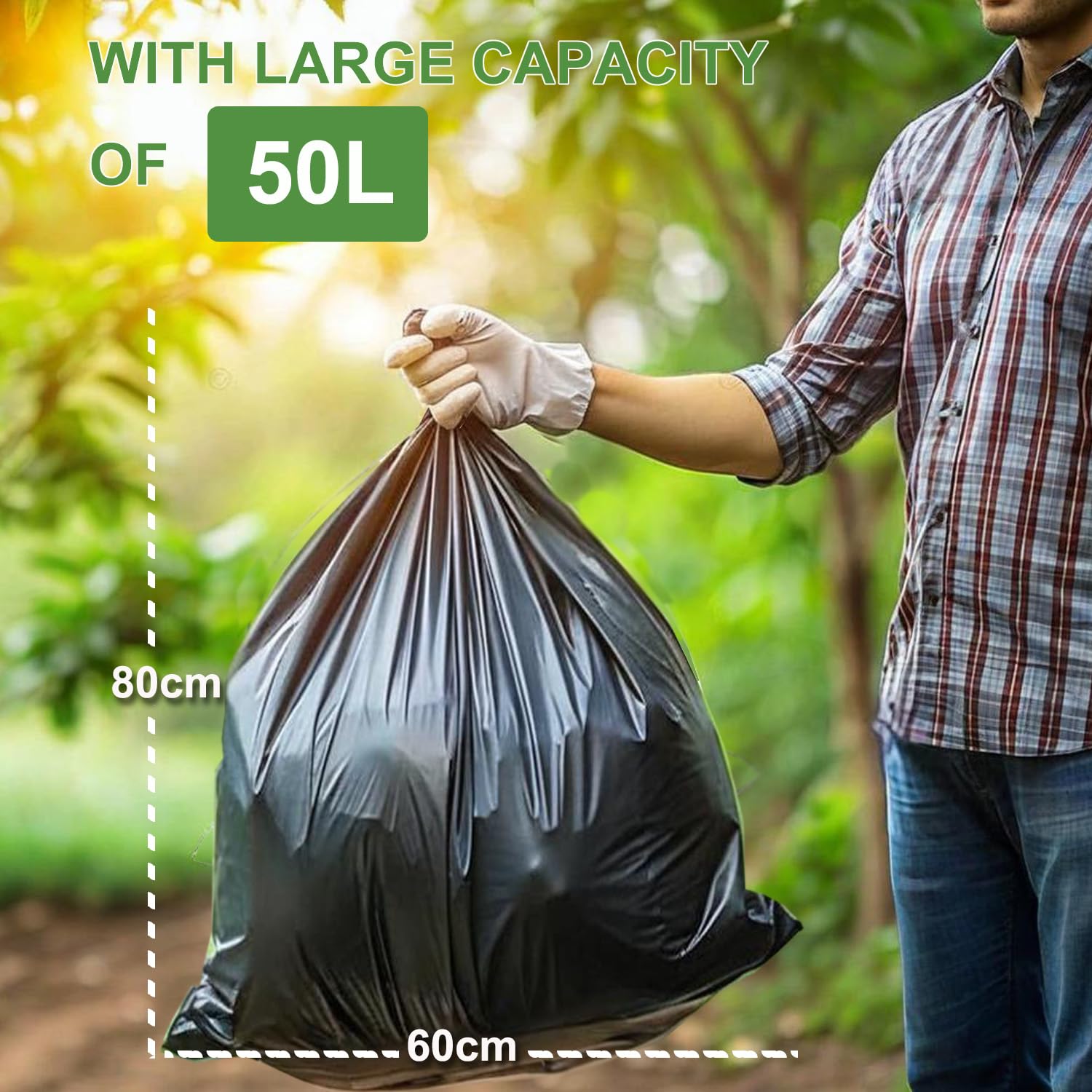 KITBEST 50L Recycling Müllbeutel Müllsäcke (40 Beutel), Starke Mülltüten Abfallbeutel Mülleimerbeutel, Passend für 30-50L Haus- und Gartenabfalleimer, Schwarze, reißfest und wasserdicht (60×80cm)