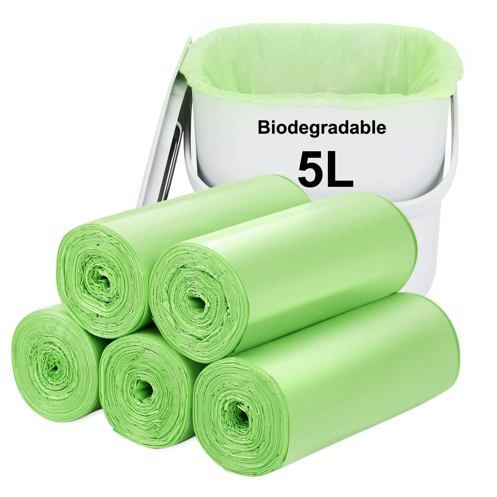 Biologisch abbaubare Müllbeutel 120 Stück, Aievrgad 5 l/1,2 Gallonen kleine Müllbeutel/für Arbeitsplattenbehälter. Abfallbeutel, 100% recycelt, robust, abbaubar, Kompostbeutel