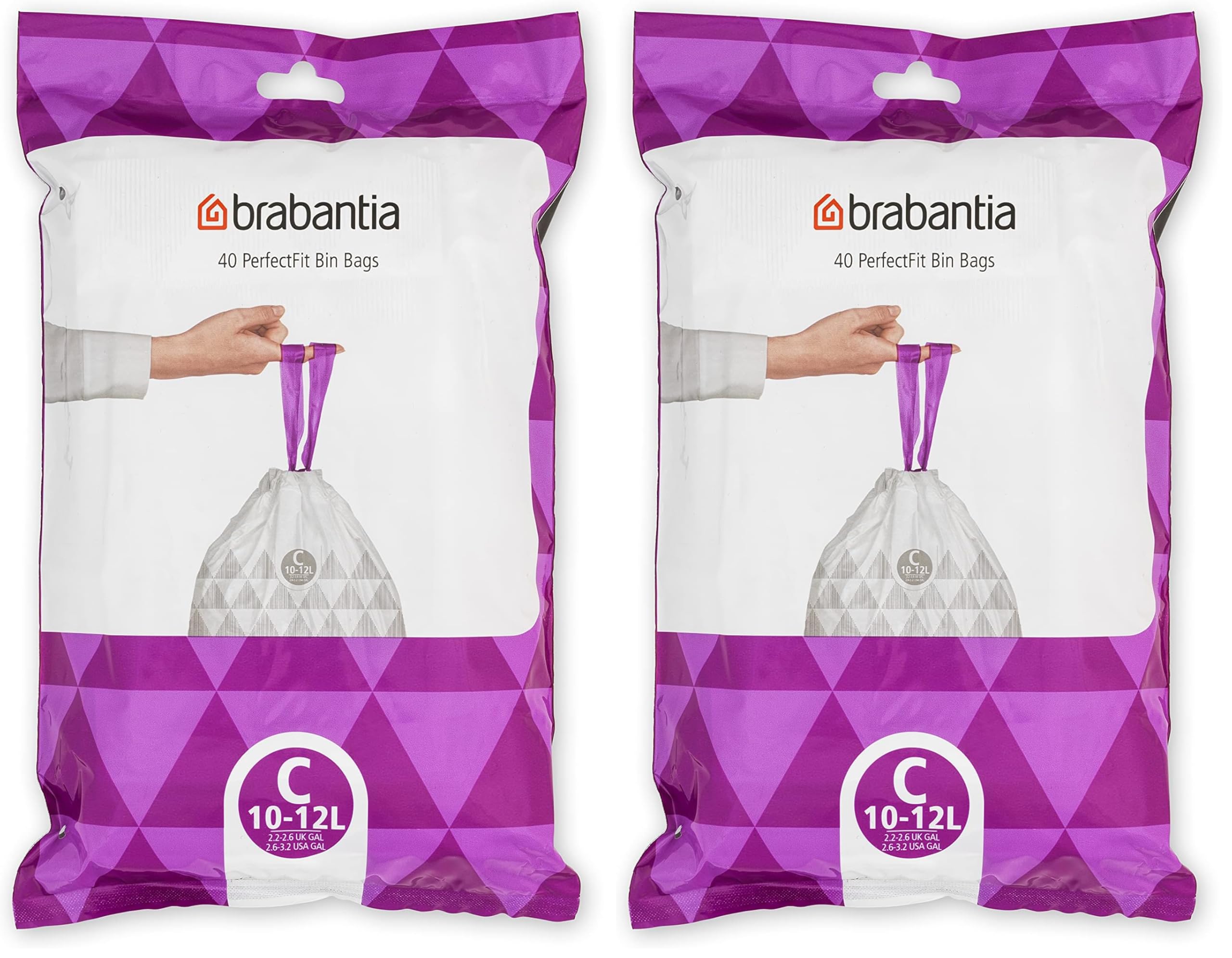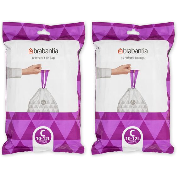 Brabantia Müllbeutel PerfectFit, Spenderpackung (Code C - 10L / 12L), Extra Starke müllsäcke Mit Zugband (40 Müllbeutel) (Packung mit 2)