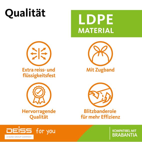 DEISS Müllbeutel 23-30 Liter für Brabantia Touch Bin (Größe G), 40 Stück