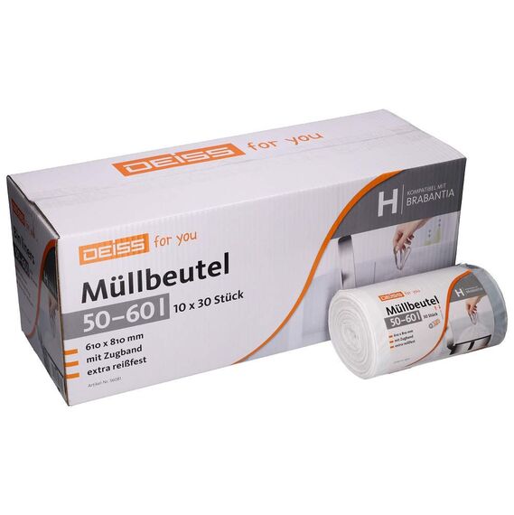 Müllbeutel DEISS 50-60 Liter für Brabantia Touch Bin (Größe H), 30 Stück