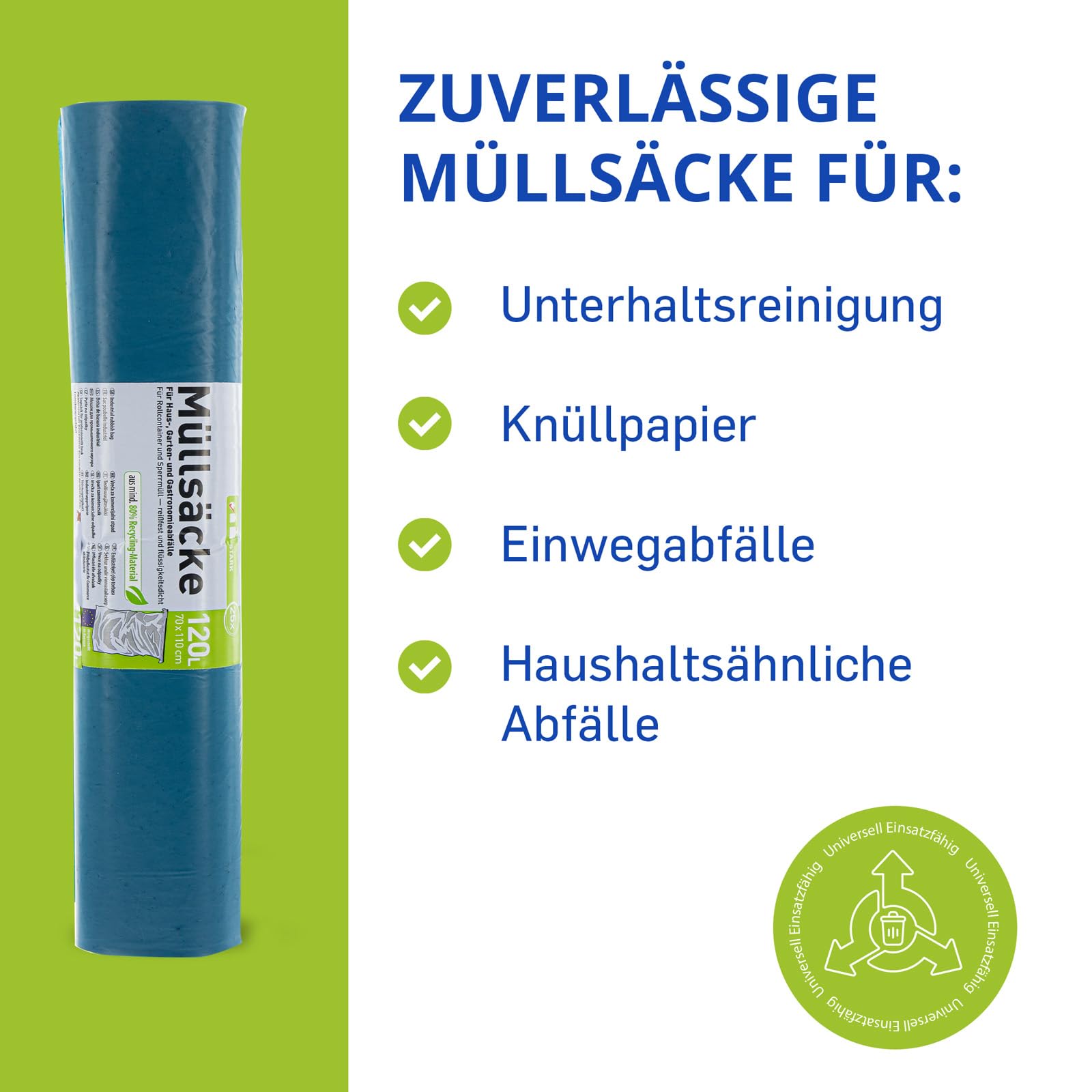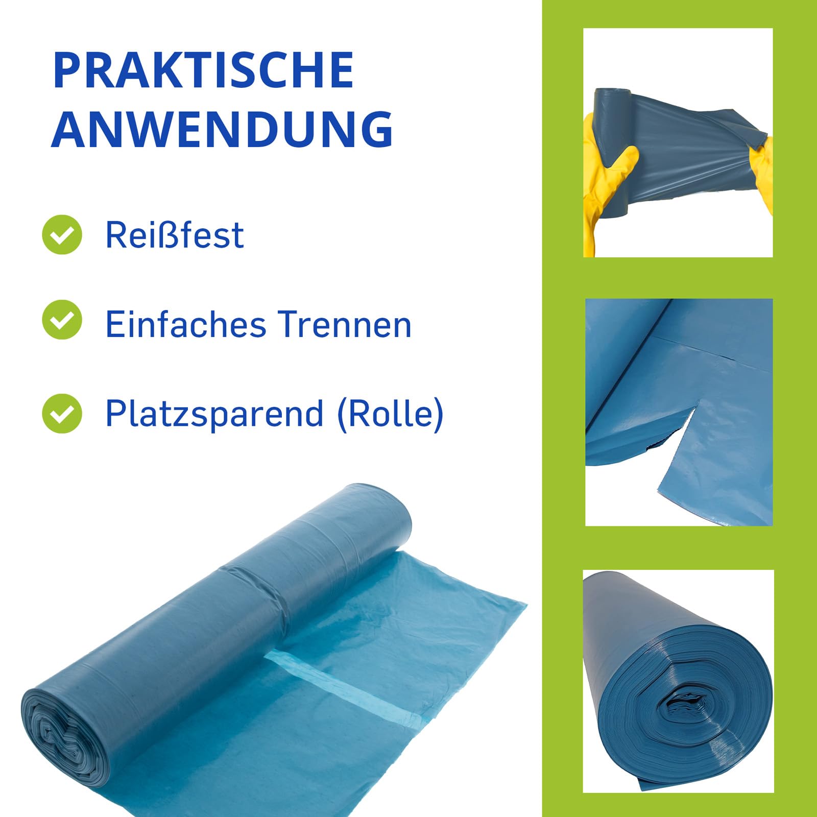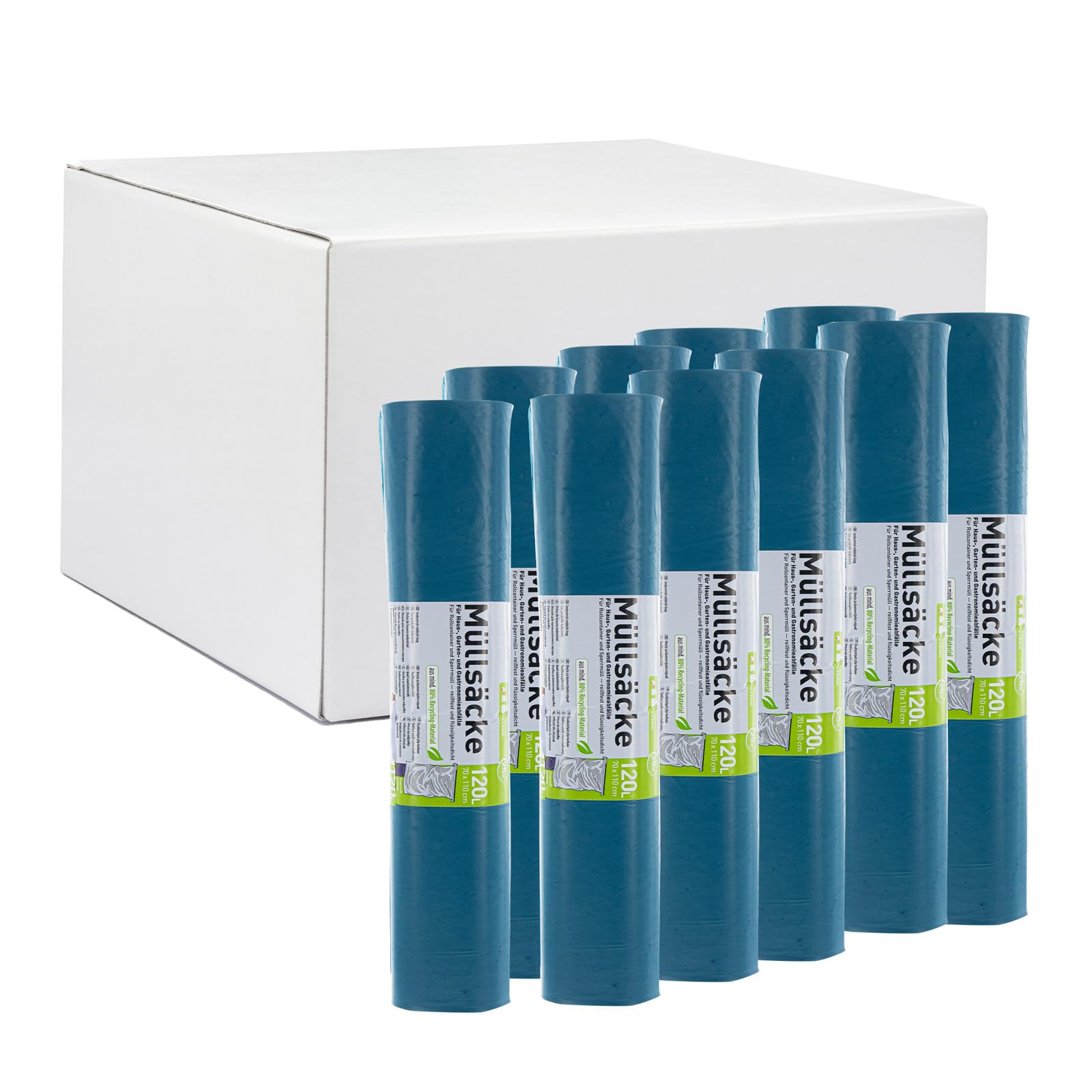 Hossi's Wholesale – 120 Liter Abfallsäcke 10 Rollen à 25 Stück – blaue Müllsäcke für Haus-, Garten- & Gastronomieabfälle – reißfeste Müllbeutel mit 39my Stärke (700 x 1100 mm)