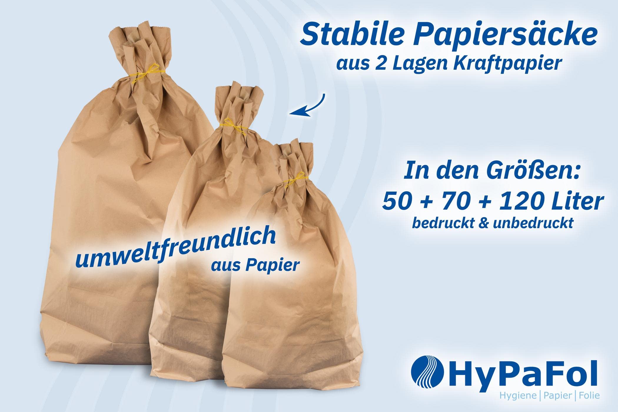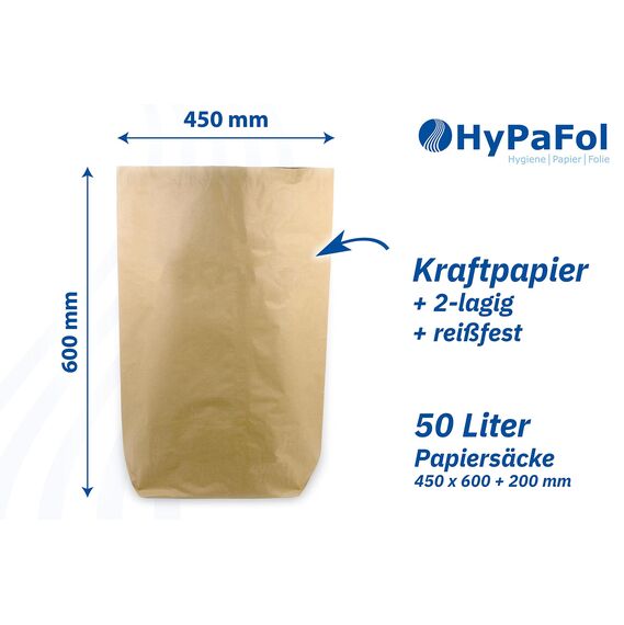Hypafol Bio Papier Müllbeutel 50 Stück | abbaubare braune Biomüllbeutel für kompostierbare & biologische Abfälle und mehr | ohne Plastik | 2-lagig, Tüten mit 50 L Fassungsvermögen | 450x600+200 mm