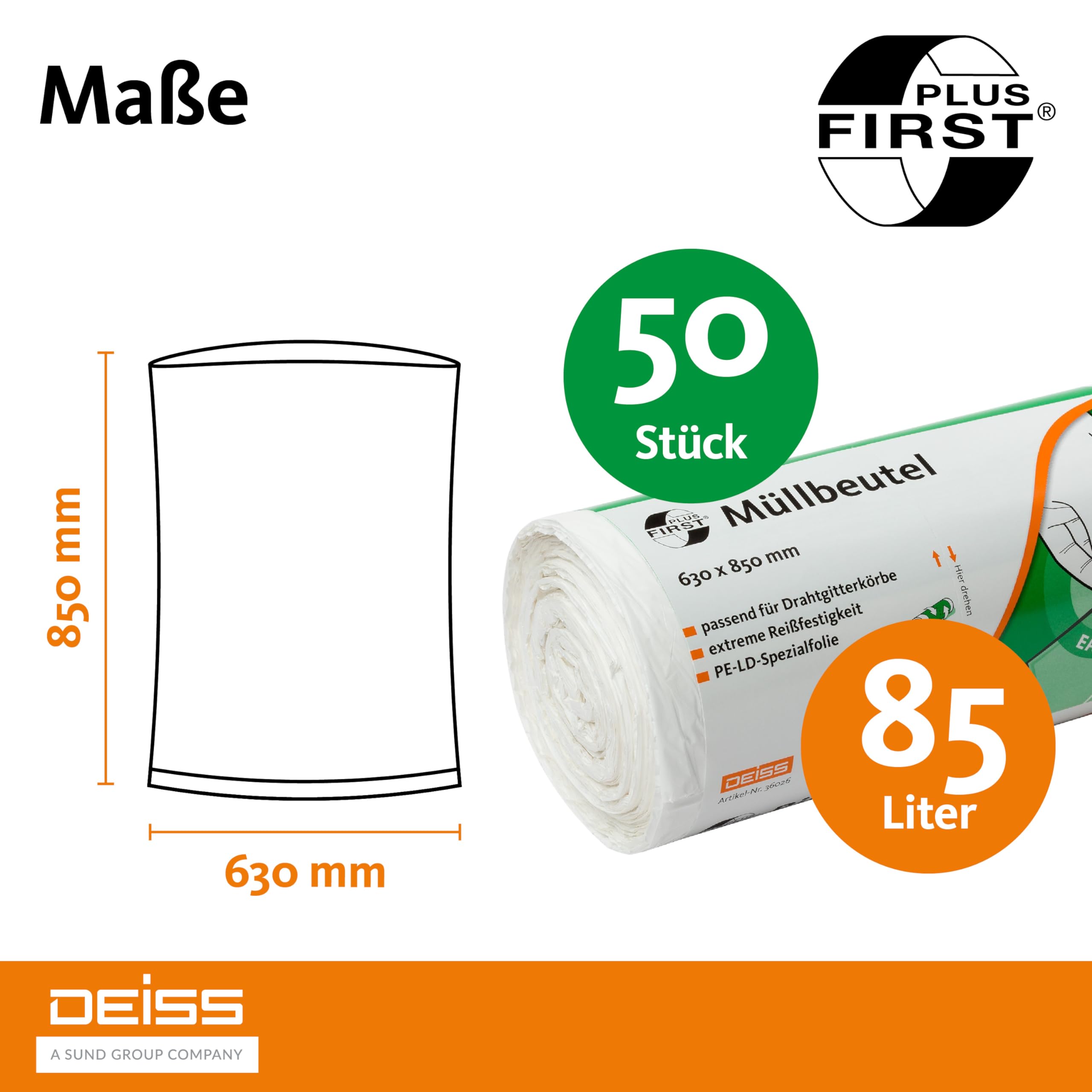 Müllbeutel DEISS FIRST PLUS weiß 85 L, 50 Stück