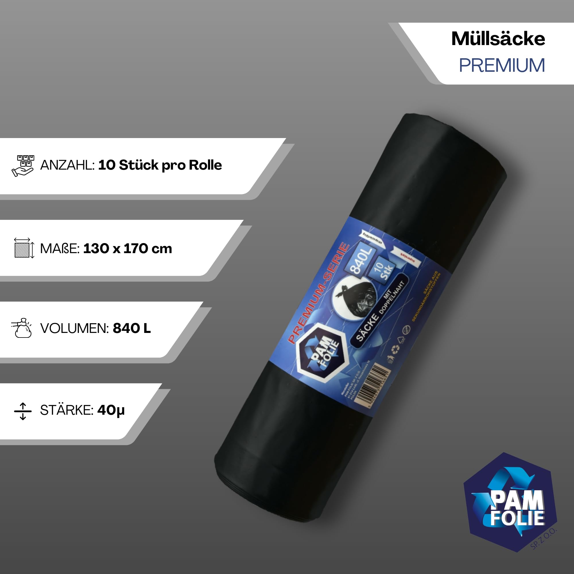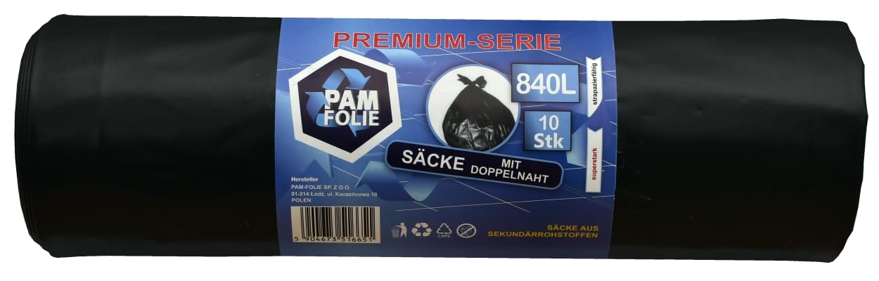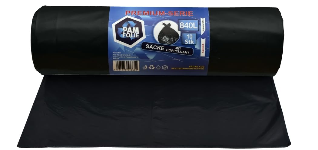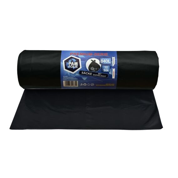 PAM-FOLIE Müllsäcke 840L - 10 Stück - XXL Große Bauschutt-Abfallsäcke, Premium - 130x170cm - 40µm - schwarzer Müllbeutel - Bauschuttsäcke - Säcke für Bauschutt Abfalls, Styropor
