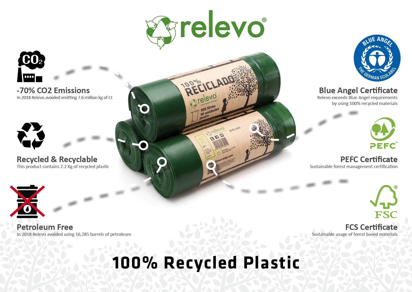 Relevo 30 Stück Müllbeutel 100 L - 100% Recycelt Müllsäcke mit Zugband
