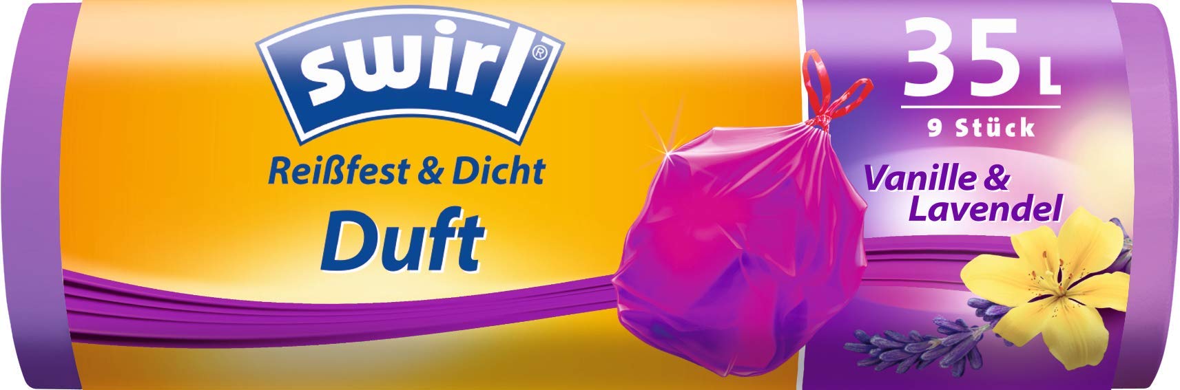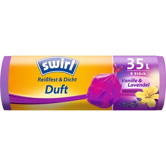 Swirl Duft-Müllbeutel Vanille-Lavendel mit Zugband, 35 Liter, 1 Rolle mit 9 Beuteln