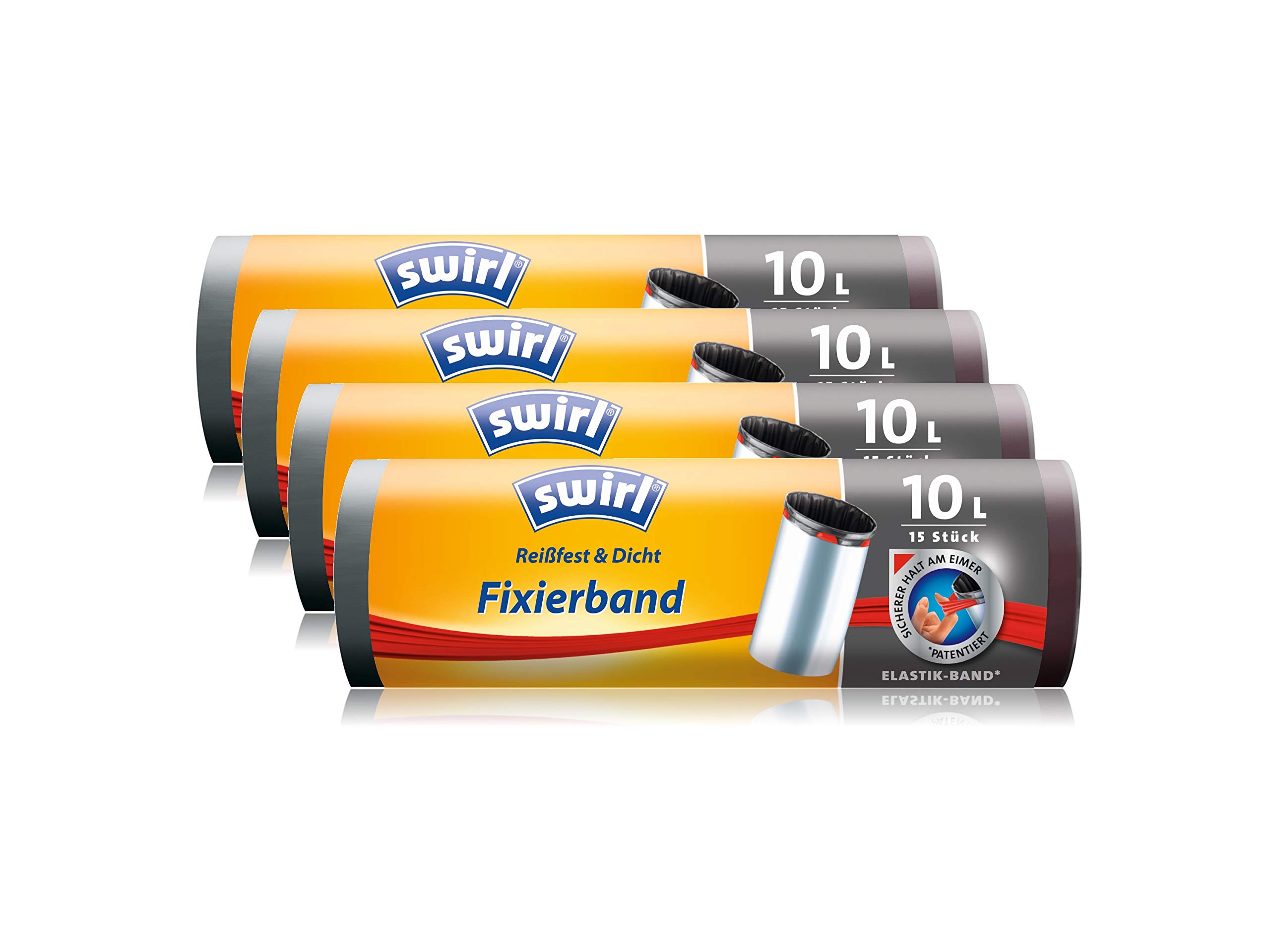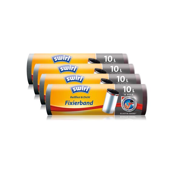 Swirl Müllbeutel mit Fixierband 10 Liter, 4er Pack (4x15 Beutel)