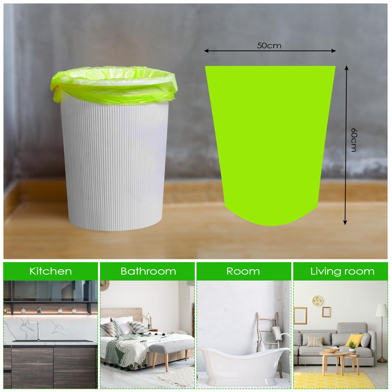 Tekenewbse 150 Stück Biomüllbeutel, Müllbeutel 25L, Bio Müllbeutel, Biomülltüten, Kompostierbare Müllbeutelm, Biomüllbeutel Papier, Bio Mülltüten, Biomüllsäcke, Müllsäcke, Trash Bags(50X60cm,Grün)
