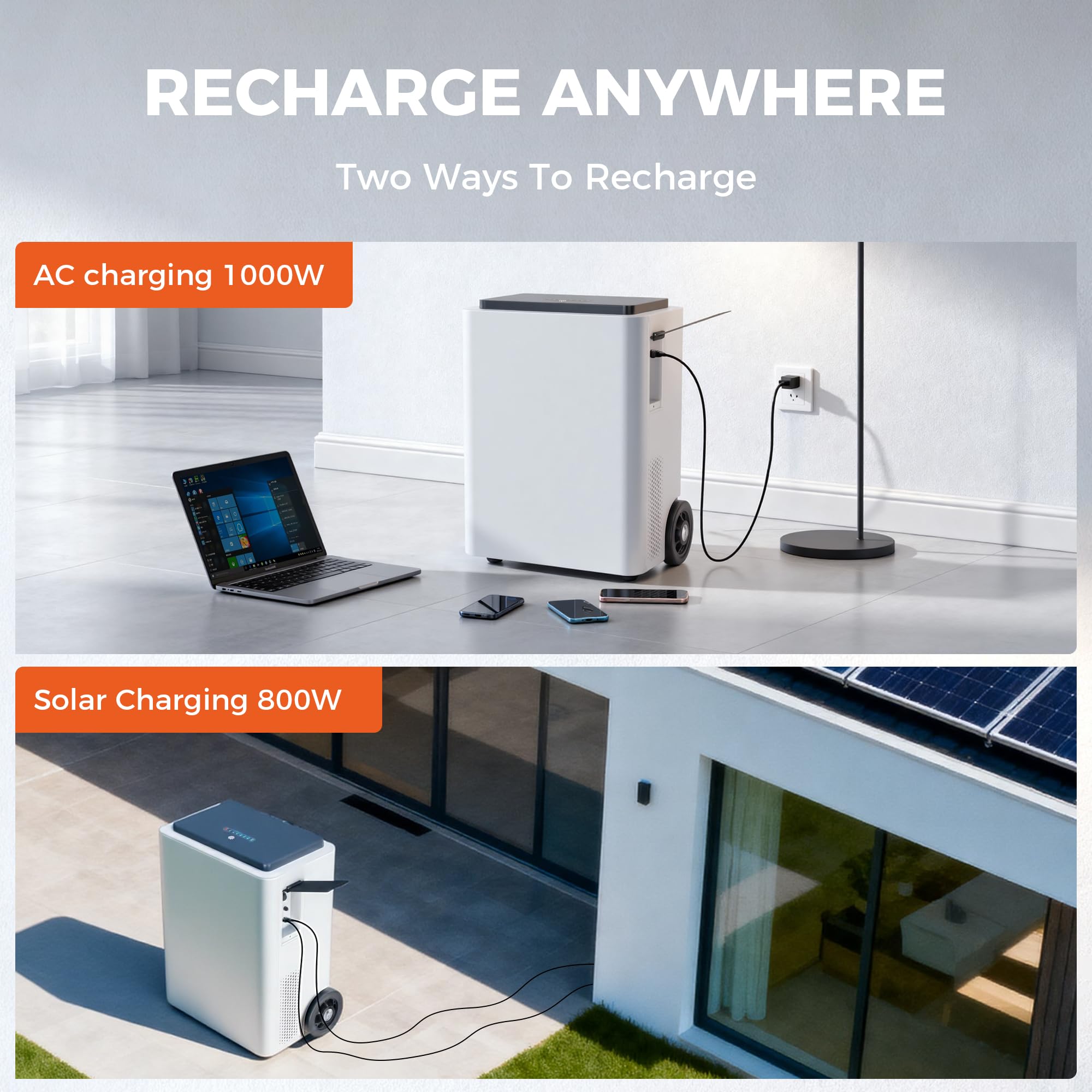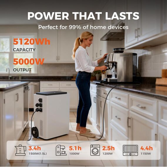 • 【Blitzschnelle Solaraufladung & UPS Funktion】Der AP5000 Stromgenerator lädt mit dem SP400W Solarpanel durch MPPT-Technik (99.5% Effizienz) in Rekordzeit auf, die UPS Funktion gewährleistet nahtlose Stromversorgung bei Ausfällen. Dies macht ihn zu einem zuverlässigen Notstromaggregat Akku für Home Office oder empfindliche Geräte.​
