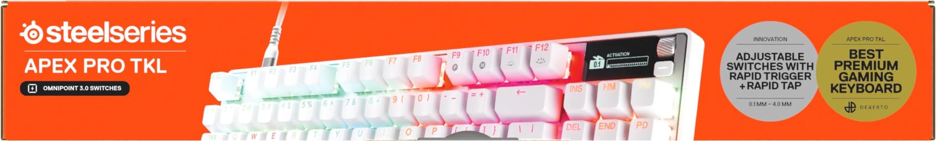 teelSeries Apex Pro TKL Gen 3 Weiß - HyperMagnetic Gaming Tastatur - OmniPoint 3.0 Switches - Anpassbares Ansprechverhalten - Rapid Trigger - Rapid Tap/SOCD - OLED - PBT-Keycaps - USB-C - FR AZERTY