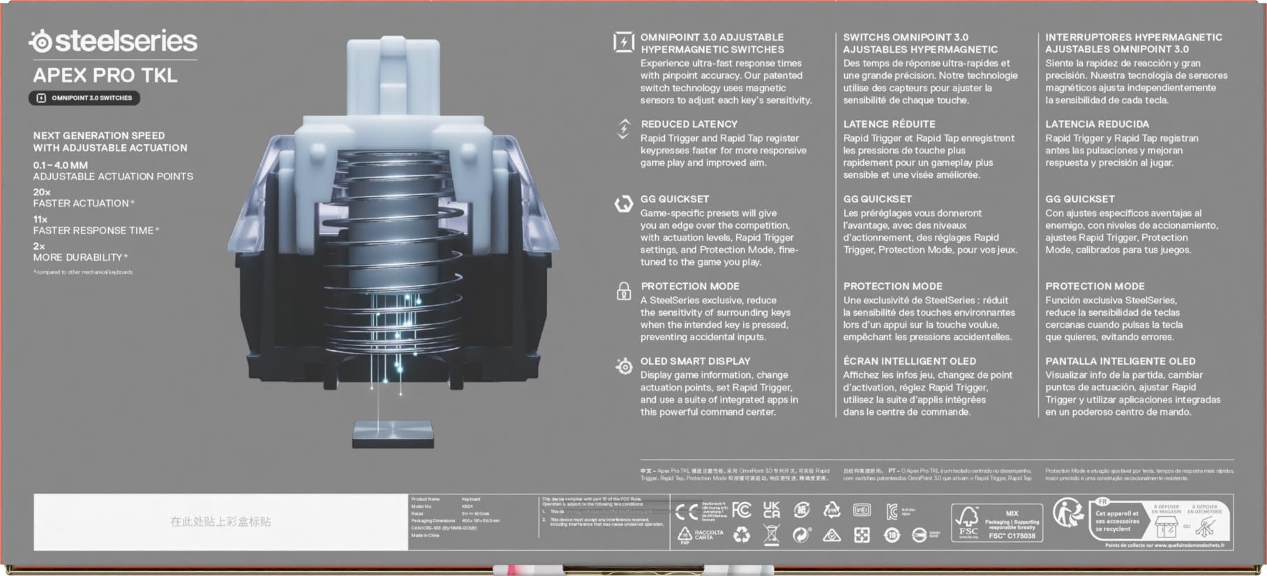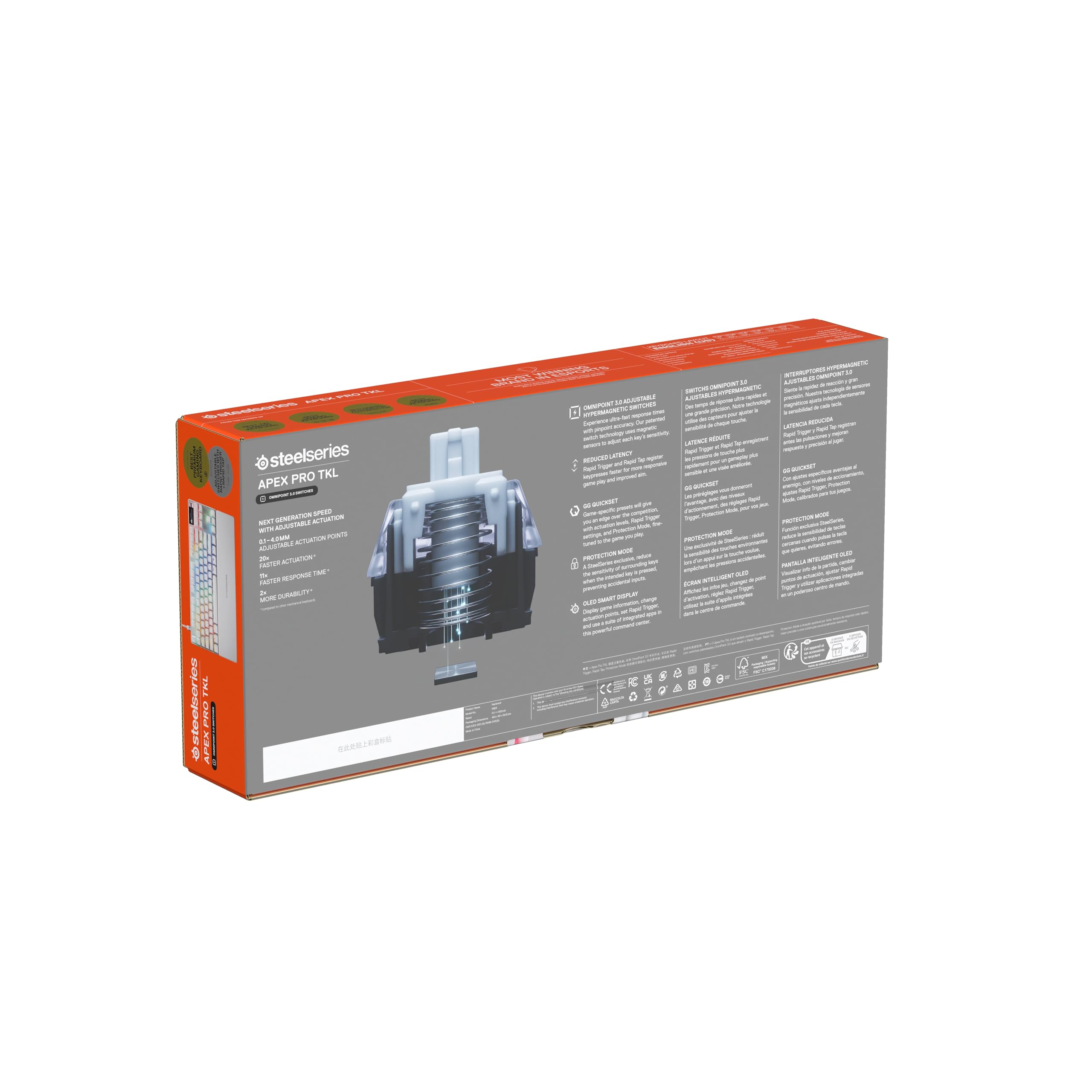 • SCHUTZMODUS - Eine exklusive Funktion von SteelSeries – schützen Sie Ihre Inputs, indem Sie die Empfindlichkeit der umliegenden Tasten verringern, damit ein versehentliches Auslösen verhindert wird