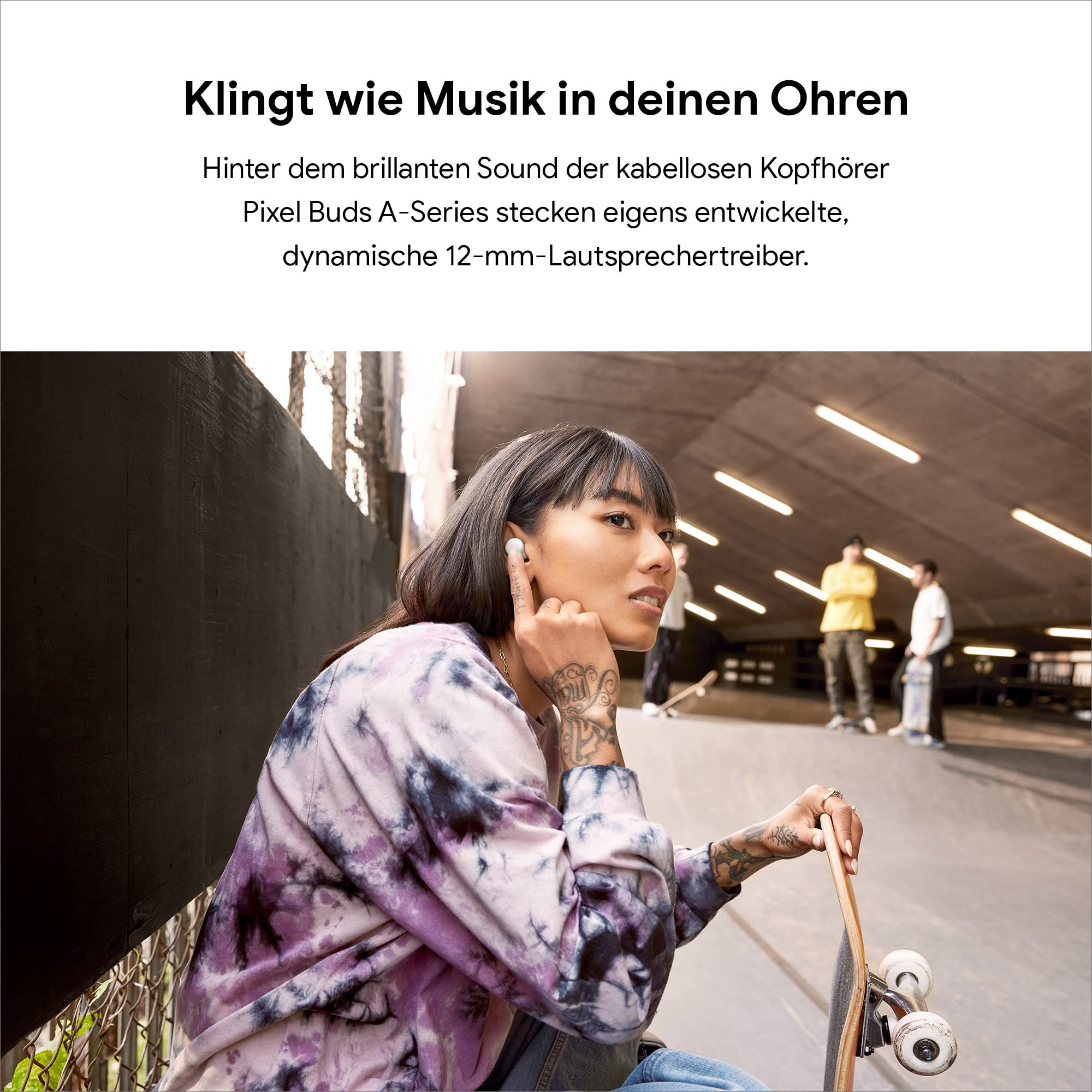 • Klingt wie Musik in deinen Ohren; Hinter dem brillanten Sound der Pixel Buds A-Series stecken eigens entwickelte, dynamische 12-mm-Lautsprechertreiber