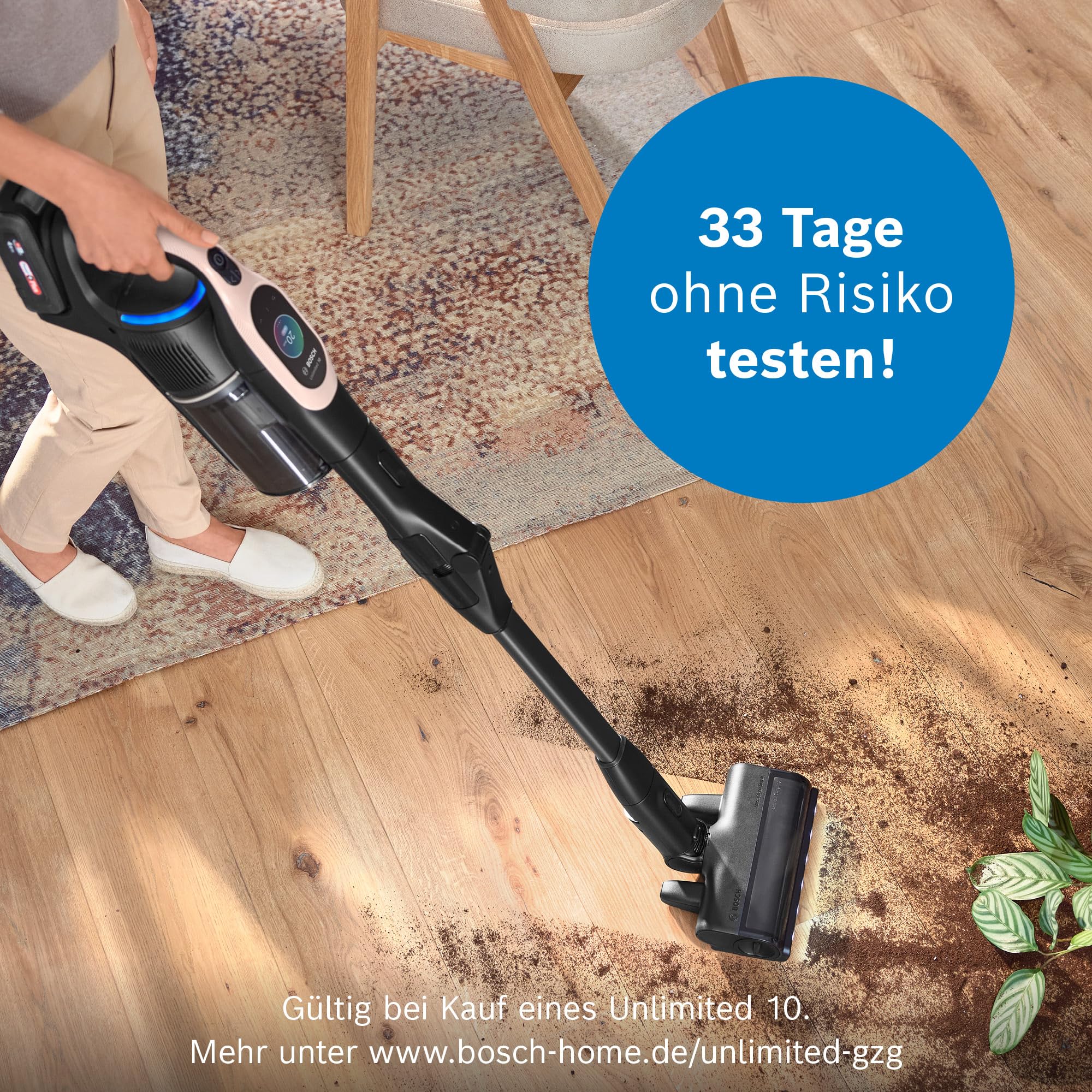 Bosch Akku-Staubsauger Unlimited 10 BKS1041RHF, kabellos, MicroClean Technology, TFT-Display, Staubkomprimierung, HEPA-Filtersystem, Knickrohr, 10 Jahre Motorgarantie, 4.0 Ah Akku, LED-Licht, rosé