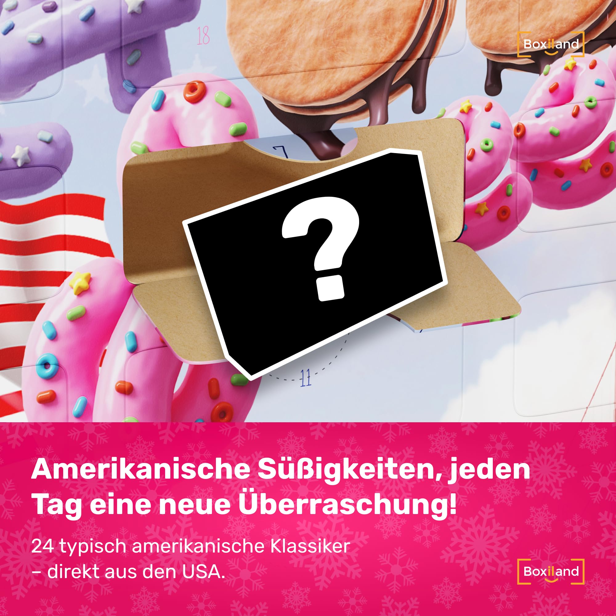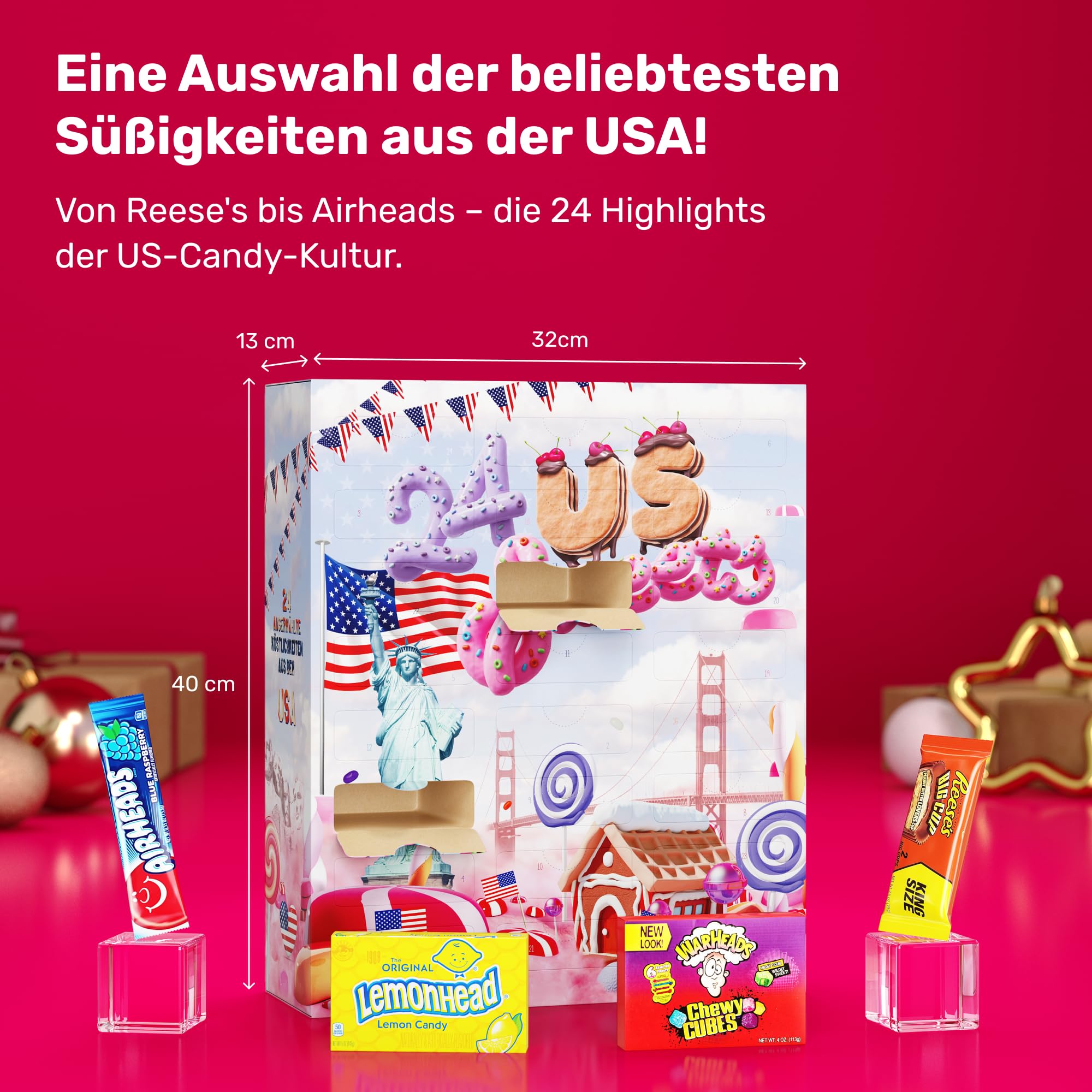 UMBRELLA® USA Adventskalender 2025 [ORIGINAL US CANDY] – 24 amerikanische Süßigkeiten & Snacks – US Sweets Adventskalender für Kinder, Jugendliche