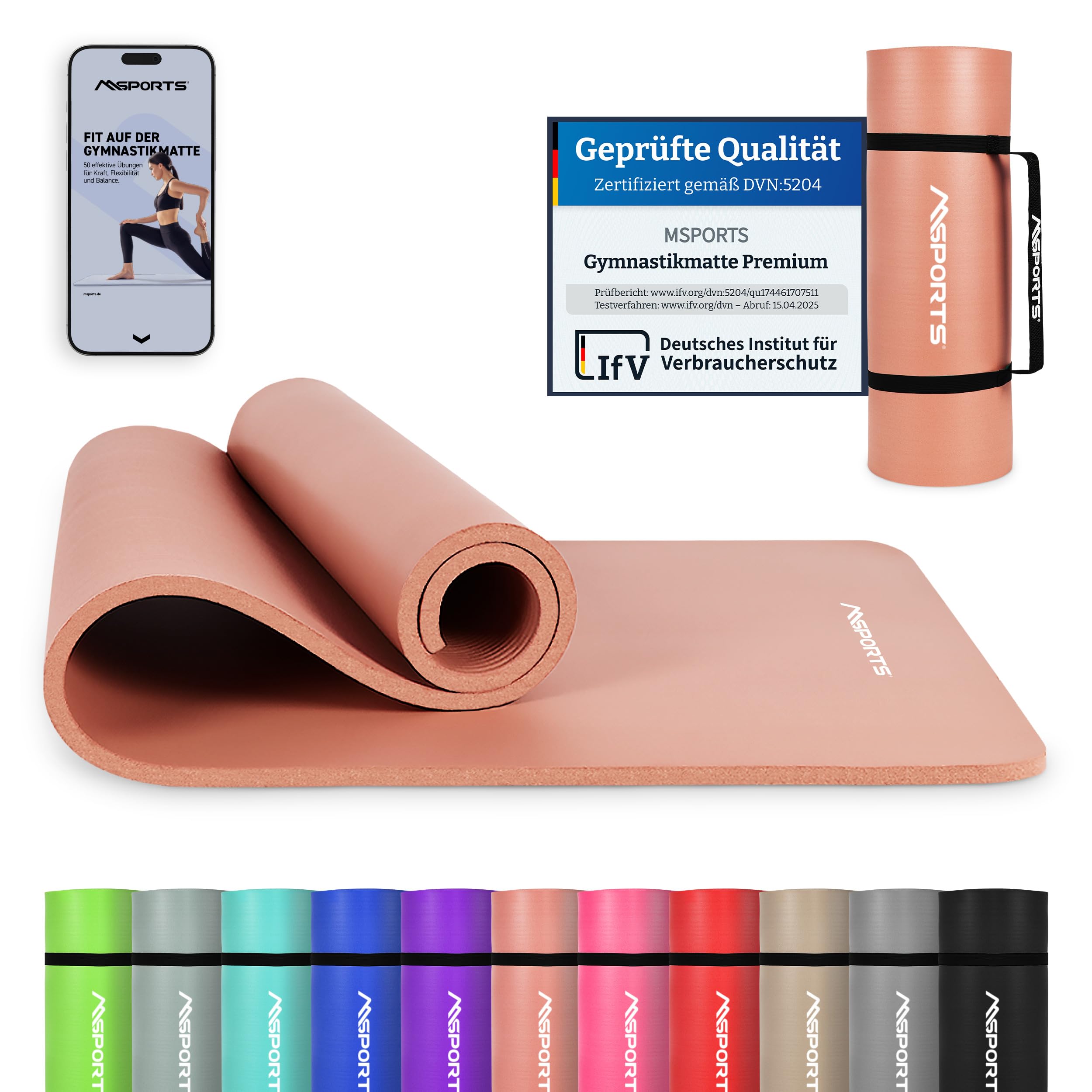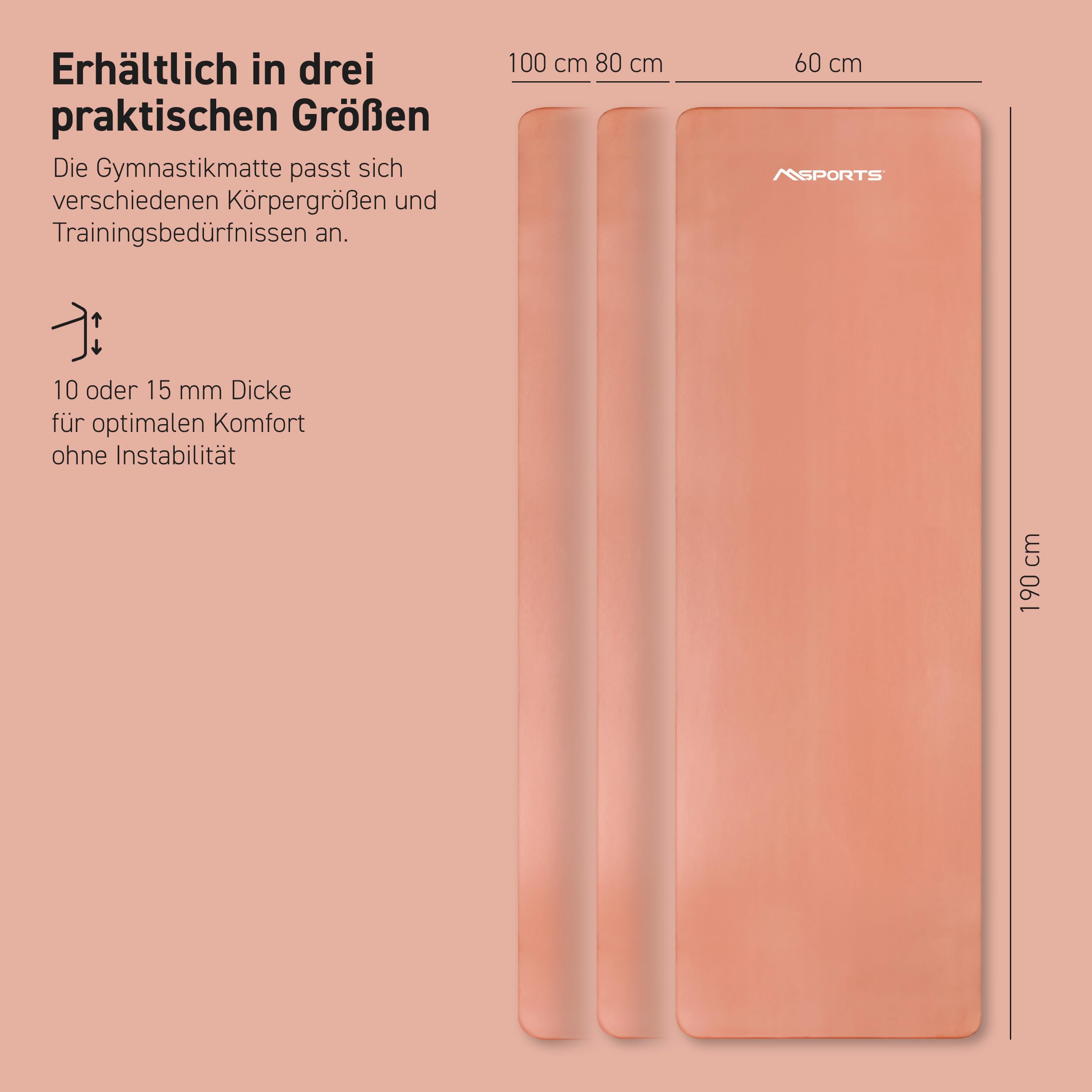 MSPORTS Gymnastikmatte Premium inkl. Tragegurt + Übungsposter + Workout App I Hautfreundliche Fitnessmatte 190 x 60 x 1,5 cm - Peach - Phthalatfreie Yogamatte, Größe: 190 x 60 x 1,5 cm, Farbe: Peach