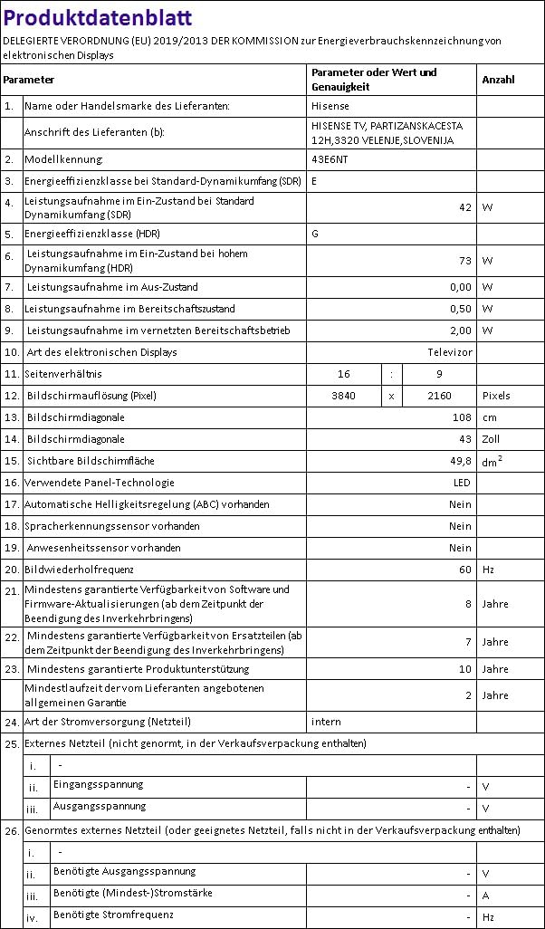 Hisense 43E6NT 108cm (43 Zoll) Fernseher, 4K UHD Smart TV, Precision Colour, HDR, Dolby Vision, 60Hz, Triple Tuner DVB-C/S/S2/T/T2, WiFi, HDMI 2.1, Bluetooth, Alexa Built-in, Schwarz, [2024]