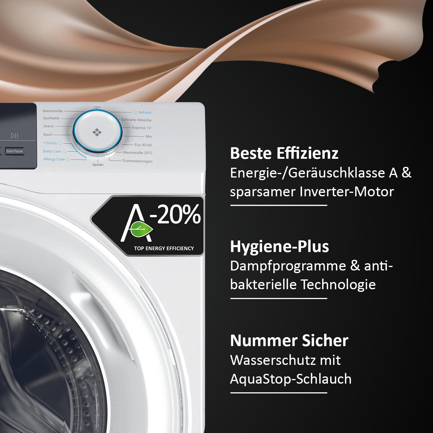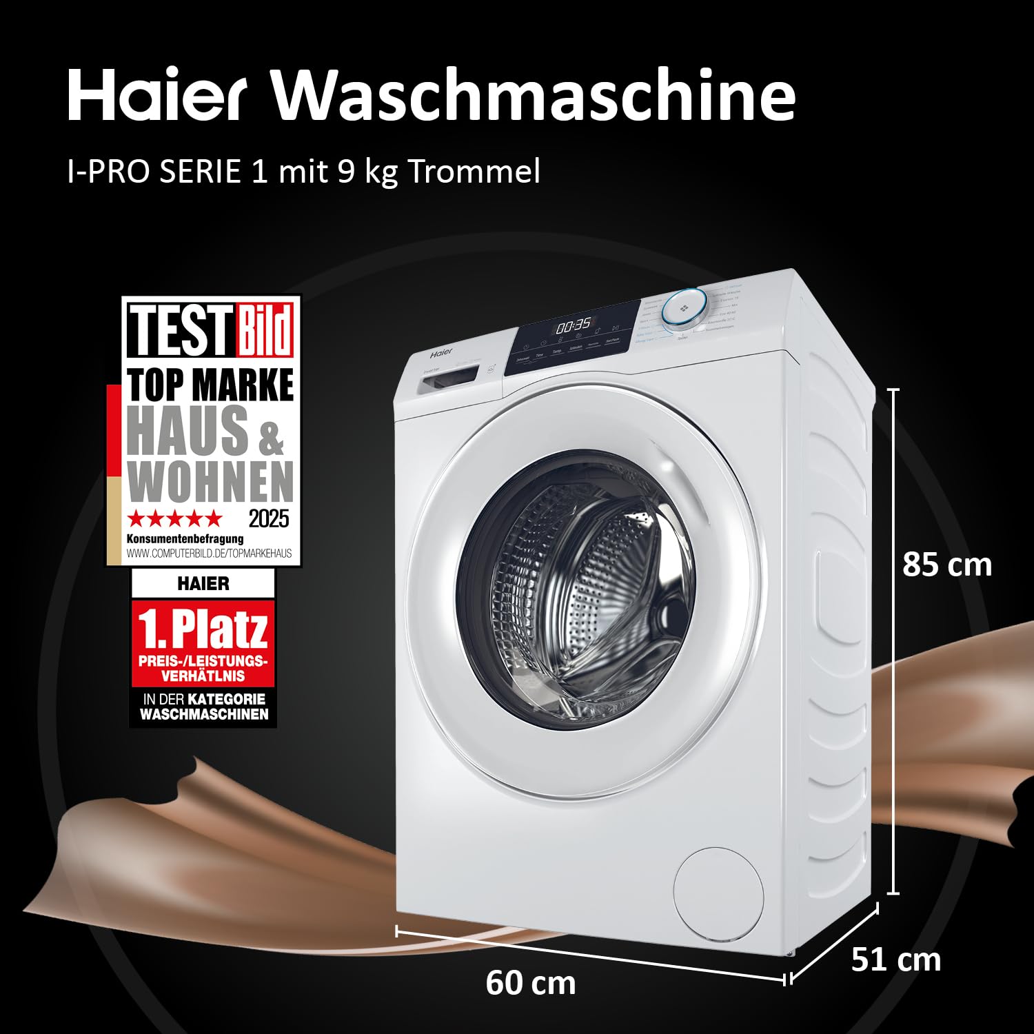 Haier Frontlader Waschmaschine 9kg I I-PRO SERIE 1 HW90-BP14929BU1 I Mit A-20% Effizienz, 1.400 U/Min. & sparsamem Inverter-Motor I Per App steuerbar I Mengenautomatik & Refresh-Programm